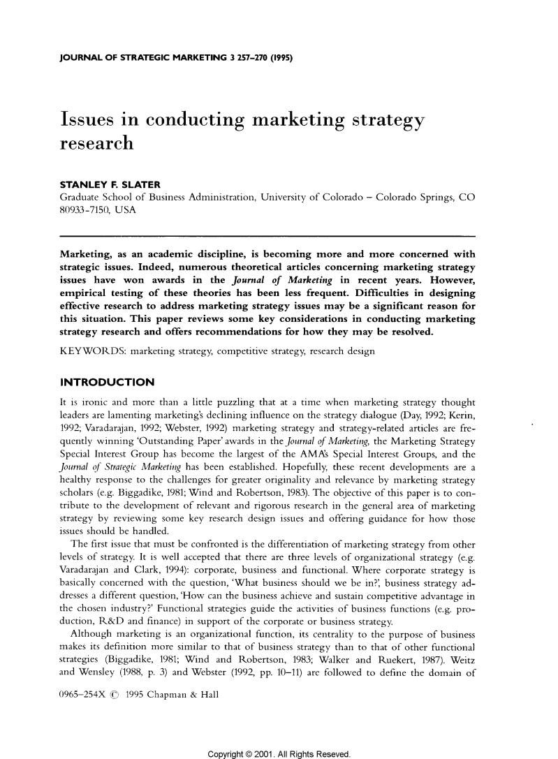 具有讽刺意味的甚至是有点令人费解的是,当在营销策略以为时间领袖感叹营销 - 在战略对话不断下降的影响更多。(戴,1992年,凯琳,1992;瓦拉达拉金,1992年;韦伯斯特,1992年)的营销策略和战略相关文章能够赢得了市场营销杂志“优秀论文奖,营销策略特殊利益集团已成为国内最大的在AMAS特殊利益群体,以及期刊战略营销已经建立。希望这些最近的事态发展是更大的原创性和相关性通过营销战略学者所面临的挑战(例如Biggadike,1981年,温德和罗伯逊,1983年),一个健康的反应。本文的目的是通过回顾一些关键的研究设计问题,并为这些问题应该如何处理提供指导的Co CON-敬意营销战略的总体区域相关和严谨研究的发展。