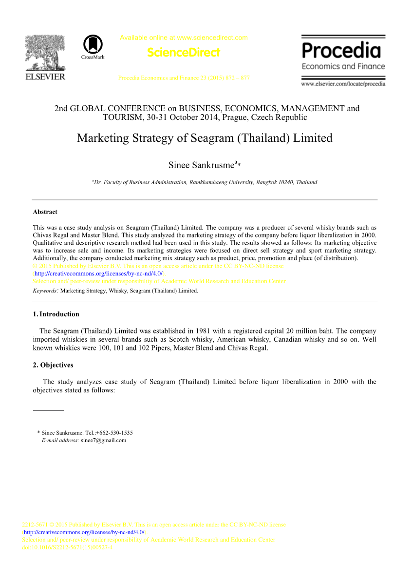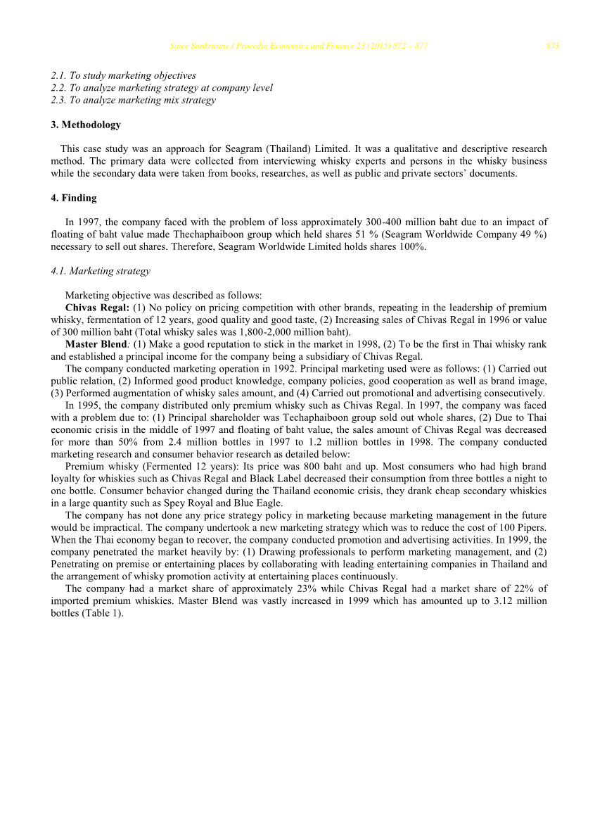 本研究分析了2000年酒类自由化前西格拉姆(泰国)有限公司的案例研究,目标如下: