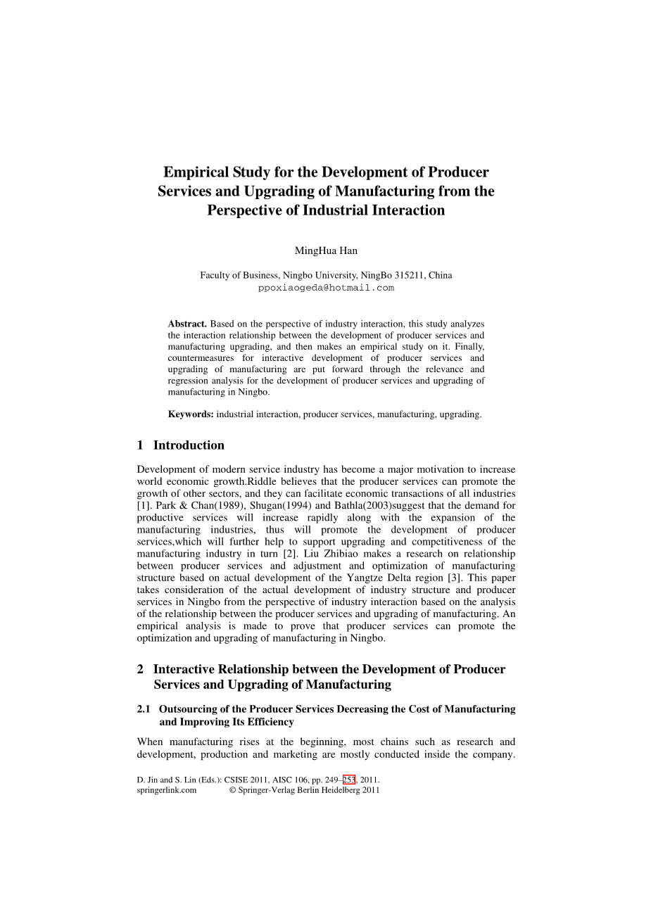 2. Qiu,L.,Shen,Y.,Ren,W.关于国内外生产者服务和制造业的互动发展研究.世界地区研究杂志2007:71-77