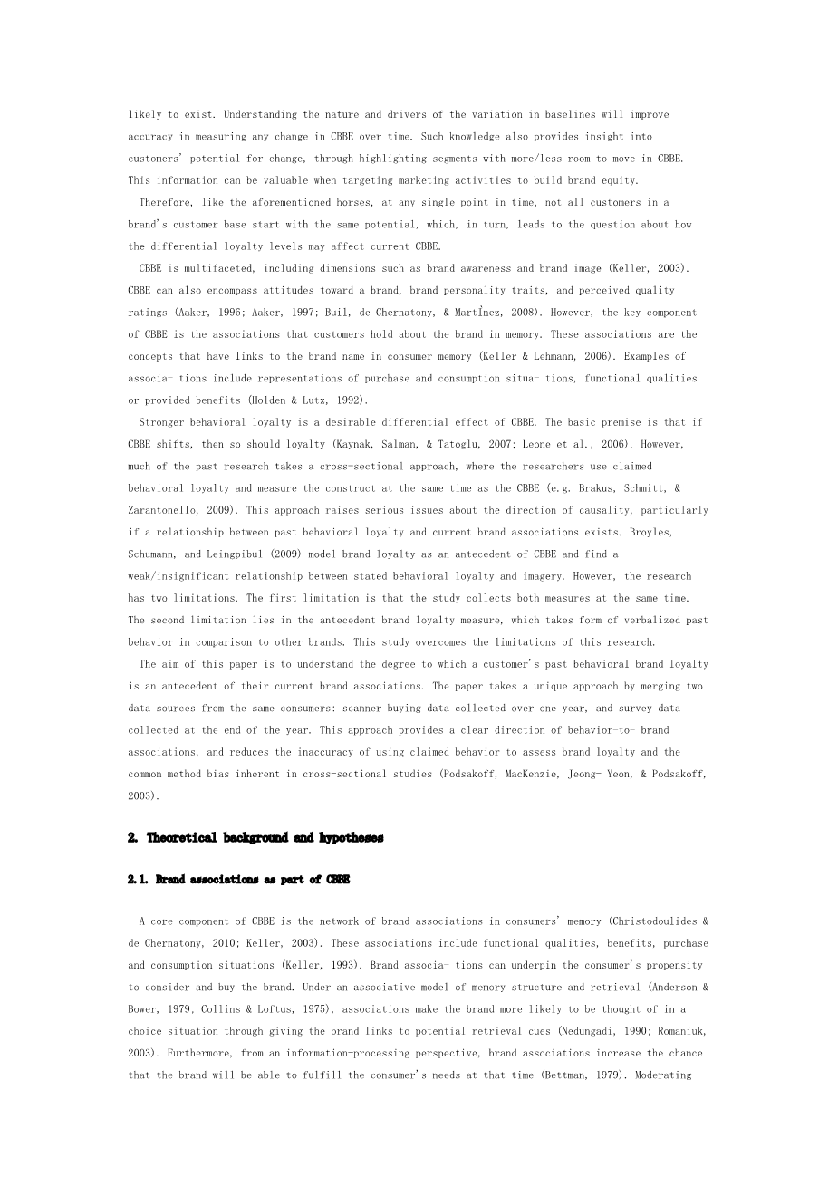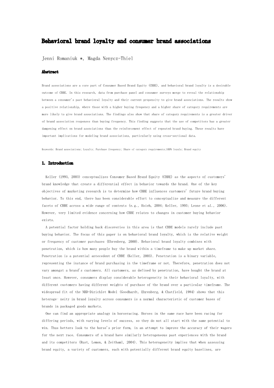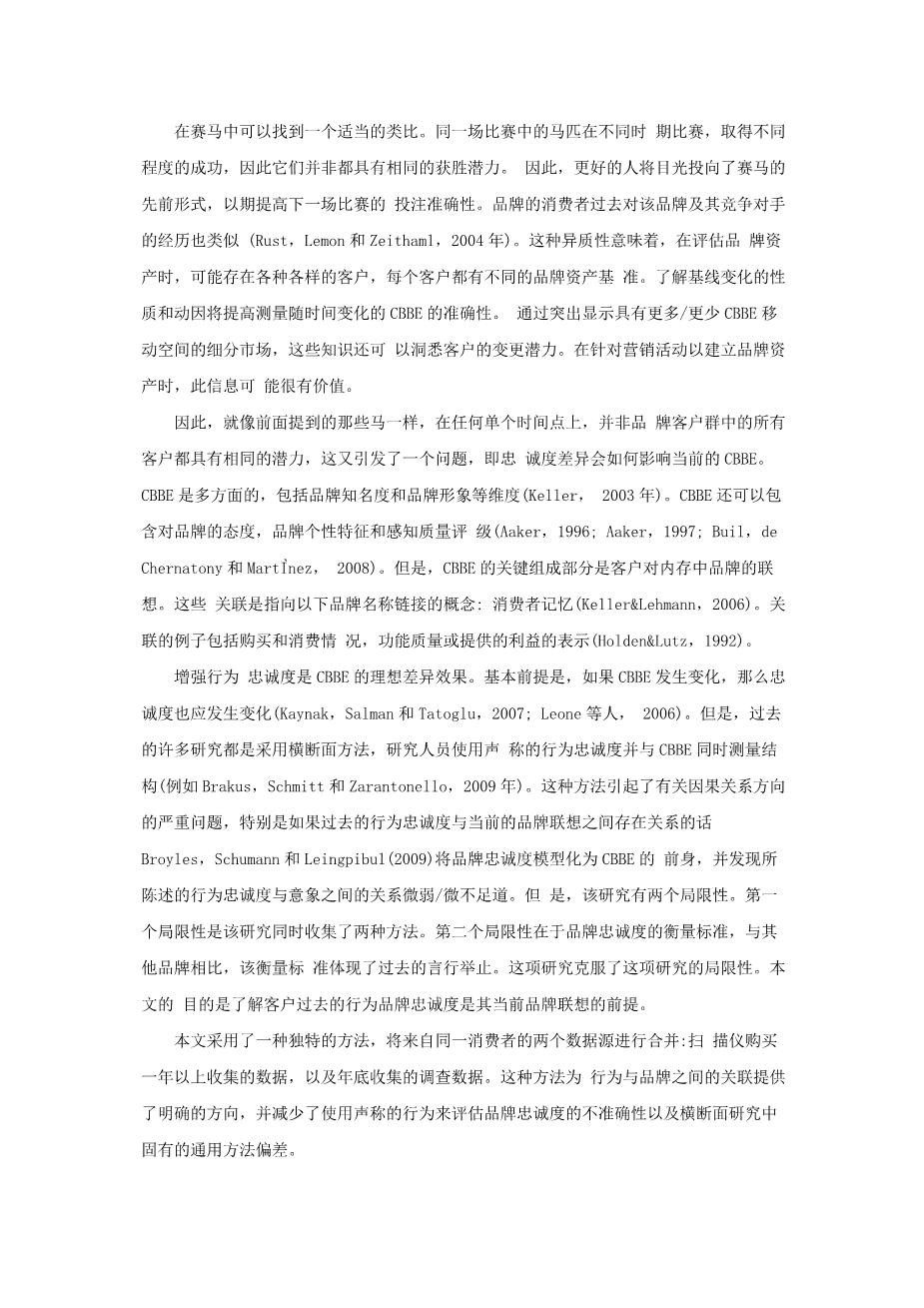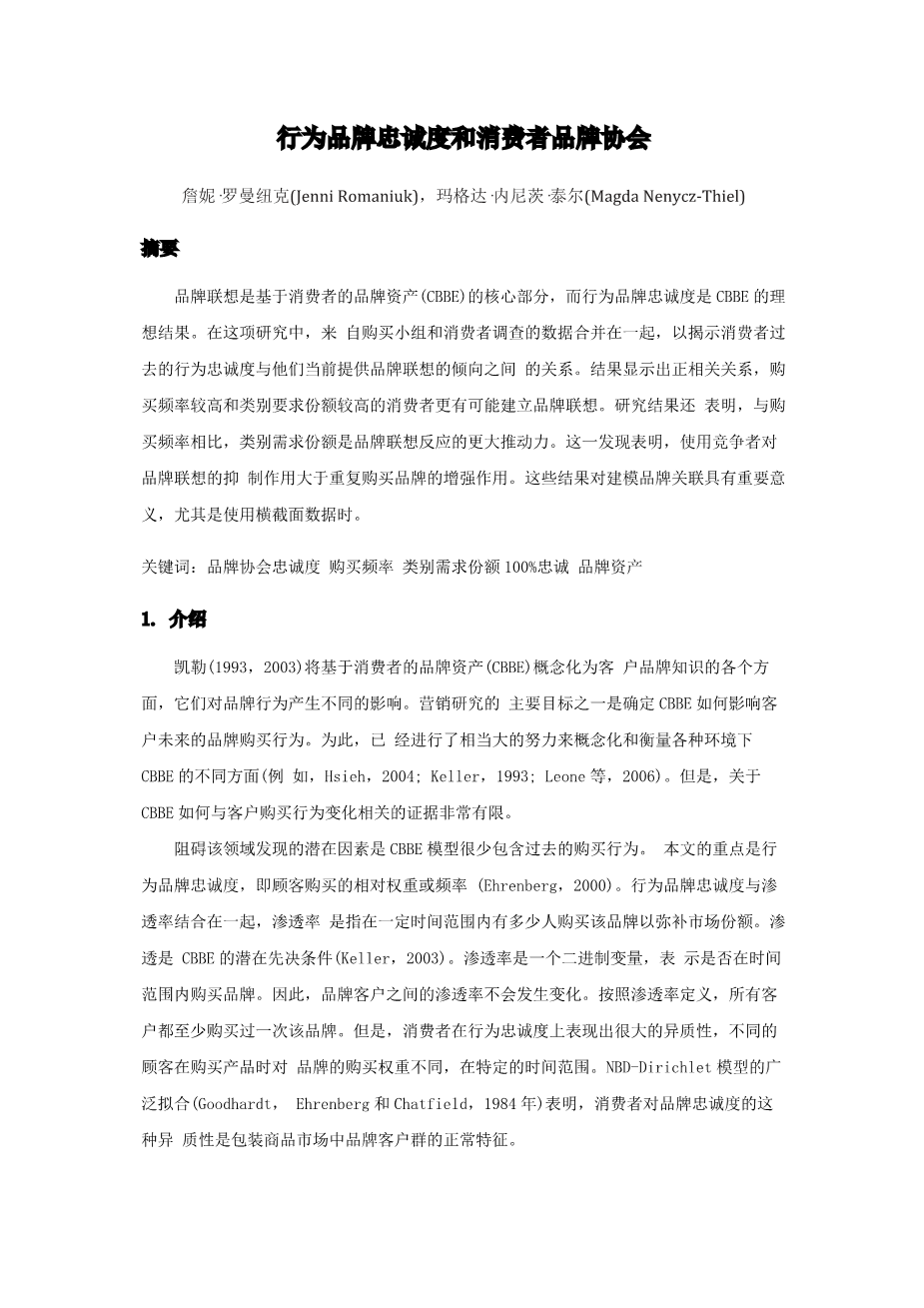 行为品牌忠诚度和清费者品牌协会外文翻译资料