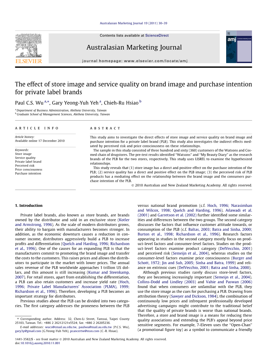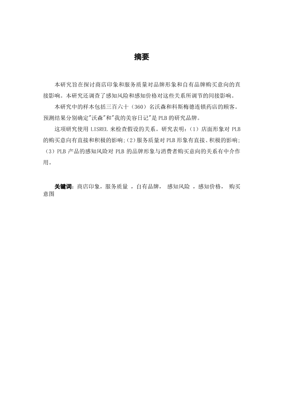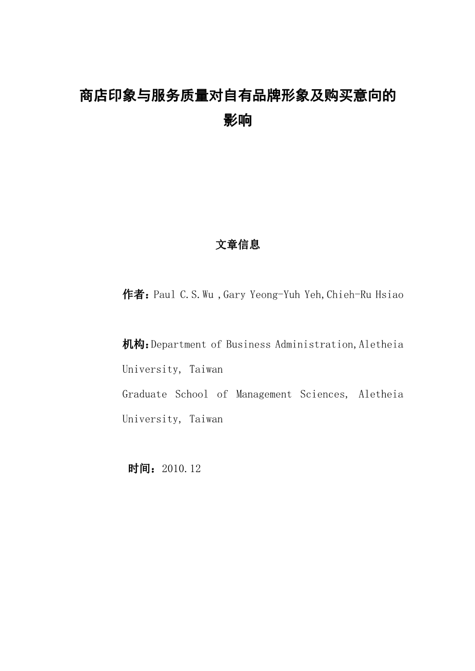 商店印象与服务质量对自有品牌形象及购买意向的影响外文翻译资料