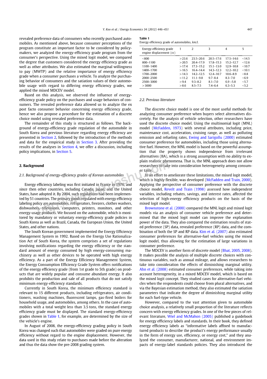 本研究的其余部分结构如下。第2节介绍了韩国汽车能效等级管理的背景和以往有关能效的文献,第3节介绍了实证研究的方法和数据。在提供了第4节中的分析结果之后,我们在第5节中进行了讨论,包括政策含义。