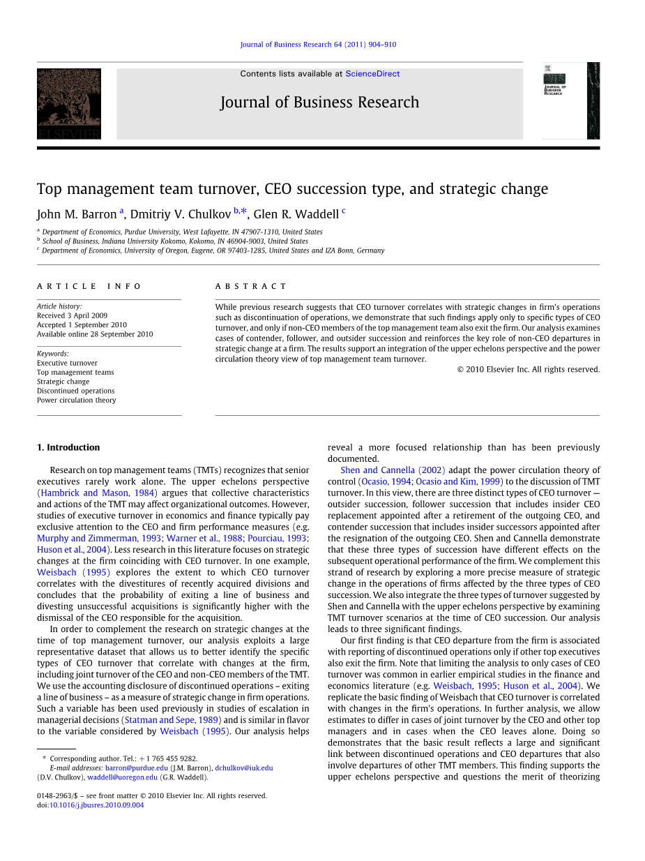 Keywords: Executive turnover, Top management teams, Strategic change, Discontinued operations, Power circulation theory