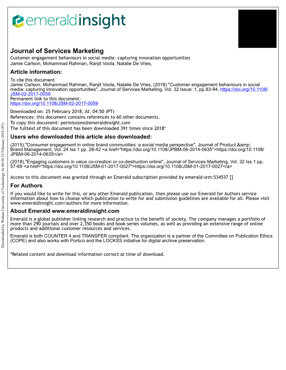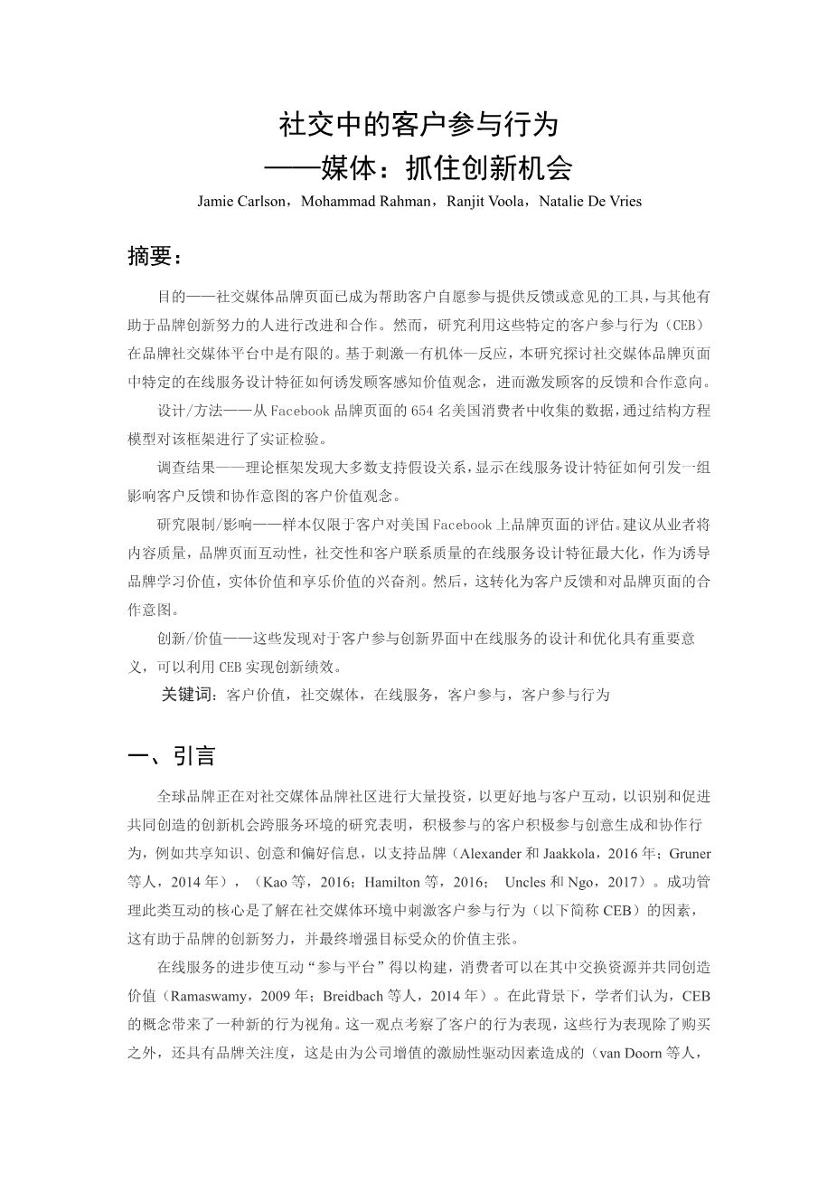 微视频的用户感知价值对品牌黏性影响的实证研究外文翻译资料 2022-01-05 21:12:26 英语原文共 14 页,剩余内容已隐藏,支付完成后下载完整资料 英语原文共 13 页,剩余内容已隐藏,支付完成后下载完整资料资料编号:[2184] 原文和译文剩余内容已隐藏,您需要先支付 30元 才能查看原文和译文全部内容!立即支付 发小红书推广免费获取该资料资格。点击链接进入获取推广文案即可: Ai一键组稿 | 降AI率 | 降重复率 | 论文一键排版 PREVIOUS NEXT 您可能感兴趣的文章 影响国际服装零售商进入模式选择的因素外文翻译资料 电子商务生态系统的竞争优势与建设策略研究外文翻译资料 企业品牌战略研究外文翻译资料 品牌战略与日本的软实力外文翻译资料 互联网上的数字音乐消费:来自点击流数据的证据外文翻译资料 优衣库的战略管理外文翻译资料 商店印象与服务质量对自有品牌形象及购买意向的影响外文翻译资料 基于复杂网络的微电影广告传播机制研究外文翻译资料 寄生虫、害虫和宠物在一个全球化的世界:新的视角和挑战外文翻译资料 星巴克咖啡品牌的中国本土化设计策略分析外文翻译资料