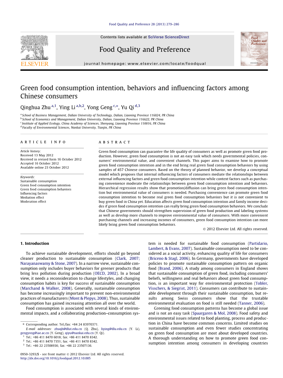 Author(s): Qinghua Zhu a,1, Ying Li a,b,2, Yong Geng c,*, Yu Qi d,3