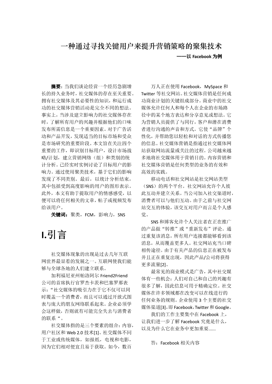 微信营销对格力消费者购买意愿的影响研究外文翻译资料 2022-01-19 20:31:31 英语原文共 7 页,剩余内容已隐藏,支付完成后下载完整资料 英语原文共 7 页,剩余内容已隐藏,支付完成后下载完整资料资料编号:[922] 原文和译文剩余内容已隐藏,您需要先支付 30元 才能查看原文和译文全部内容!立即支付 发小红书推广免费获取该资料资格。点击链接进入获取推广文案即可: Ai一键组稿 | 降AI率 | 降重复率 | 论文一键排版 PREVIOUS NEXT 您可能感兴趣的文章 影响国际服装零售商进入模式选择的因素外文翻译资料 电子商务生态系统的竞争优势与建设策略研究外文翻译资料 企业品牌战略研究外文翻译资料 品牌战略与日本的软实力外文翻译资料 互联网上的数字音乐消费:来自点击流数据的证据外文翻译资料 优衣库的战略管理外文翻译资料 商店印象与服务质量对自有品牌形象及购买意向的影响外文翻译资料 基于复杂网络的微电影广告传播机制研究外文翻译资料 寄生虫、害虫和宠物在一个全球化的世界:新的视角和挑战外文翻译资料 星巴克咖啡品牌的中国本土化设计策略分析外文翻译资料