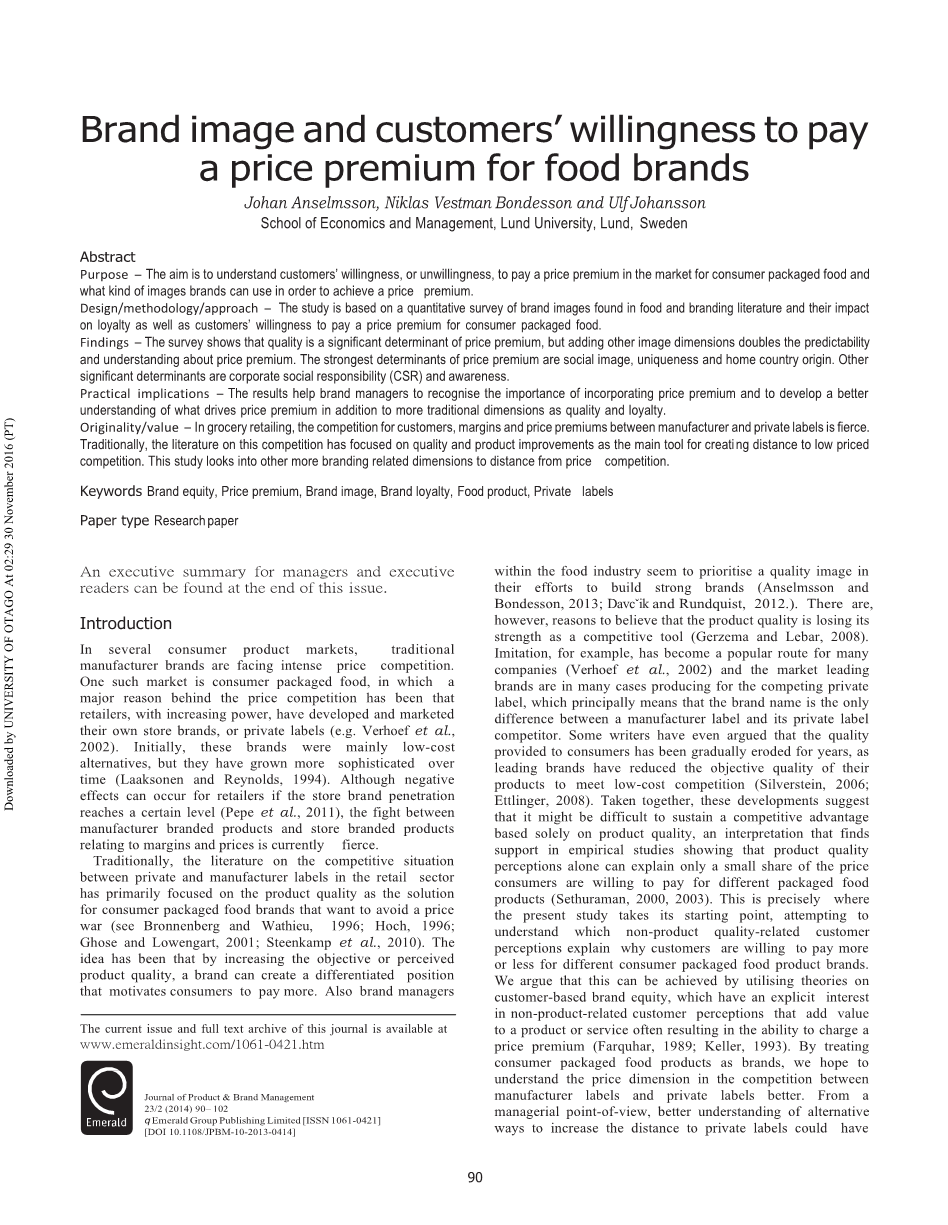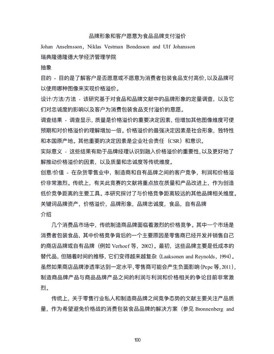 基于小象生鲜的消费者支付意愿分析外文翻译资料 2022-02-16 21:20:07 英语原文共 13 页,剩余内容已隐藏,支付完成后下载完整资料 英语译文共 22 页,剩余内容已隐藏,支付完成后下载完整资料资料编号:[451909],资料为PDF文档或Word文档,PDF文档可免费转换为Word 原文和译文剩余内容已隐藏,您需要先支付 30元 才能查看原文和译文全部内容!立即支付 发小红书推广免费获取该资料资格。点击链接进入获取推广文案即可: Ai一键组稿 | 降AI率 | 降重复率 | 论文一键排版 PREVIOUS NEXT 您可能感兴趣的文章 影响国际服装零售商进入模式选择的因素外文翻译资料 电子商务生态系统的竞争优势与建设策略研究外文翻译资料 企业品牌战略研究外文翻译资料 品牌战略与日本的软实力外文翻译资料 互联网上的数字音乐消费:来自点击流数据的证据外文翻译资料 优衣库的战略管理外文翻译资料 商店印象与服务质量对自有品牌形象及购买意向的影响外文翻译资料 基于复杂网络的微电影广告传播机制研究外文翻译资料 寄生虫、害虫和宠物在一个全球化的世界:新的视角和挑战外文翻译资料 星巴克咖啡品牌的中国本土化设计策略分析外文翻译资料