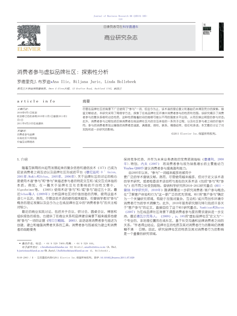 虚拟社区用户参与度提升机制研究——以”王者荣耀”为例外文翻译资料 2022-02-22 20:14:47 英语原文共 10 页,剩余内容已隐藏,支付完成后下载完整资料 英语译文共 10 页,剩余内容已隐藏,支付完成后下载完整资料资料编号:[444308],资料为PDF文档或Word文档,PDF文档可免费转换为Word 原文和译文剩余内容已隐藏,您需要先支付 30元 才能查看原文和译文全部内容!立即支付 发小红书推广免费获取该资料资格。点击链接进入获取推广文案即可: Ai一键组稿 | 降AI率 | 降重复率 | 论文一键排版 PREVIOUS NEXT 您可能感兴趣的文章 影响国际服装零售商进入模式选择的因素外文翻译资料 电子商务生态系统的竞争优势与建设策略研究外文翻译资料 企业品牌战略研究外文翻译资料 品牌战略与日本的软实力外文翻译资料 互联网上的数字音乐消费:来自点击流数据的证据外文翻译资料 优衣库的战略管理外文翻译资料 商店印象与服务质量对自有品牌形象及购买意向的影响外文翻译资料 基于复杂网络的微电影广告传播机制研究外文翻译资料 寄生虫、害虫和宠物在一个全球化的世界:新的视角和挑战外文翻译资料 星巴克咖啡品牌的中国本土化设计策略分析外文翻译资料