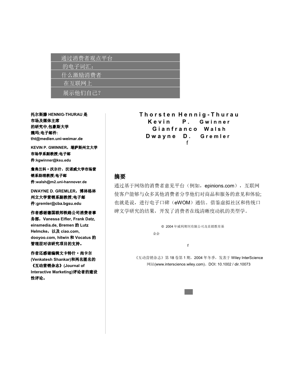 粉丝经济下的网络运营模式分析–以小红书为例外文翻译资料 2022-02-22 20:49:08 英语译文共 15 页,剩余内容已隐藏,支付完成后下载完整资料资料编号:[443795],资料为PDF文档或Word文档,PDF文档可免费转换为Word 原文和译文剩余内容已隐藏,您需要先支付 30元 才能查看原文和译文全部内容!立即支付 发小红书推广免费获取该资料资格。点击链接进入获取推广文案即可: Ai一键组稿 | 降AI率 | 降重复率 | 论文一键排版 PREVIOUS NEXT 您可能感兴趣的文章 影响国际服装零售商进入模式选择的因素外文翻译资料 电子商务生态系统的竞争优势与建设策略研究外文翻译资料 企业品牌战略研究外文翻译资料 品牌战略与日本的软实力外文翻译资料 互联网上的数字音乐消费:来自点击流数据的证据外文翻译资料 优衣库的战略管理外文翻译资料 商店印象与服务质量对自有品牌形象及购买意向的影响外文翻译资料 基于复杂网络的微电影广告传播机制研究外文翻译资料 寄生虫、害虫和宠物在一个全球化的世界:新的视角和挑战外文翻译资料 星巴克咖啡品牌的中国本土化设计策略分析外文翻译资料