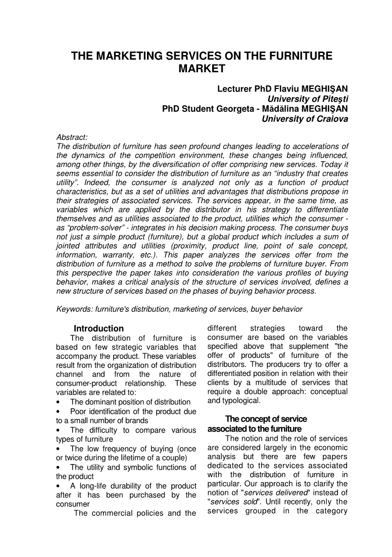这允许建立一个与家具分布相关联的详尽的服务列表,每个子集都对应于购买过程的四个阶段的特定阶段。为了尊重关于广告的立法,我们没有提到在为客户提供的具体服务方面的分销公司。我们提到,在各种比例的服务中,这些服务都是在每个罗马尼亚家具经销商的报价中找到的。