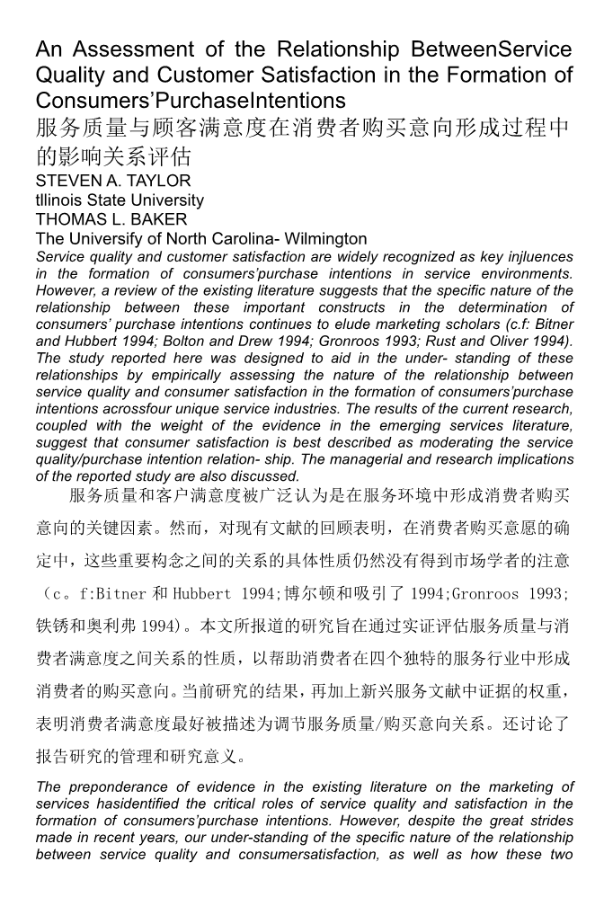 售后服务质量对消费者购买意向的影响外文翻译资料