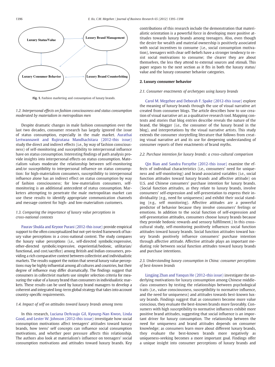 为此,本文的选择有助于加深读者对有效营销奢侈品品牌部门所需策略的理解。当然,读者可能希望将这些文章作为理解奢侈品品牌时尚营销理论和研究的起点,并继续调查该主题的其他参考文献。图1描述了包括在本专题中的论文的研究范围。下面是每篇文章及其在图1中所处位置的简要概述。