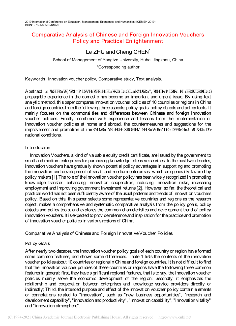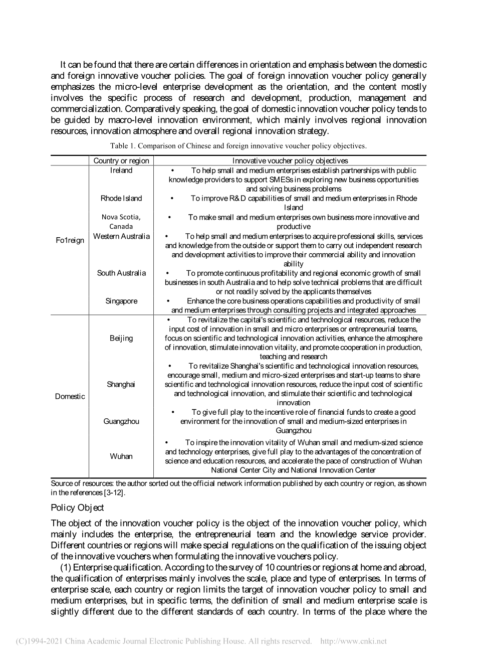 摘要。 在“双创”背景下,在国内形成可复制、可推广的经验已成为一个重要而紧迫的问题。 运用文本分析法,从政策目标,政策对象,政策工具三个方面对国内外10个国家或地区的创新券政策进行比较。主要关注中外创新券政策的共性和差异。最后,结合国内外创新券政策实施的经验教训,根据中国国情提出了改进和推广创新券政策的对策和建议。