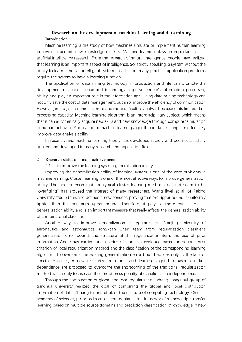 机器学习与数据挖掘发展研究外文翻译资料 2022-08-13 15:28:12 英语原文共 10 页,剩余内容已隐藏,支付完成后下载完整资料 英语译文共 7 页,剩余内容已隐藏,支付完成后下载完整资料 资料编号:[236094],资料为PDF文档或Word文档,PDF文档可免费转换为Word 原文和译文剩余内容已隐藏,您需要先支付 30元 才能查看原文和译文全部内容!立即支付 发小红书推广免费获取该资料资格。点击链接进入获取推广文案即可: Ai一键组稿 | 降AI率 | 降重复率 | 论文一键排版 PREVIOUS NEXT 您可能感兴趣的文章 基于关键词查询的聚焦网络爬虫外文翻译资料 移动社交媒体中网络舆论传播模型的构建、仿真与 实证研究外文翻译资料 钢铁工业共生网络的定量环境风险评估外文翻译资料 社交媒体网络中的知识扩散: 声誉机制和知识角色分配的影响外文翻译资料 基于情感分析的数字化内容平台用户行为研究外文翻译资料 知识管理在客户关系管理过程中的应用外文翻译资料 您如何定义和衡量研究生产力?外文翻译资料 对WEEE的再制造与回收的权衡以及中国基金政策下的环境影响外文翻译资料 数据库开发过程外文翻译资料 双边平台间的两部分关税竞争外文翻译资料