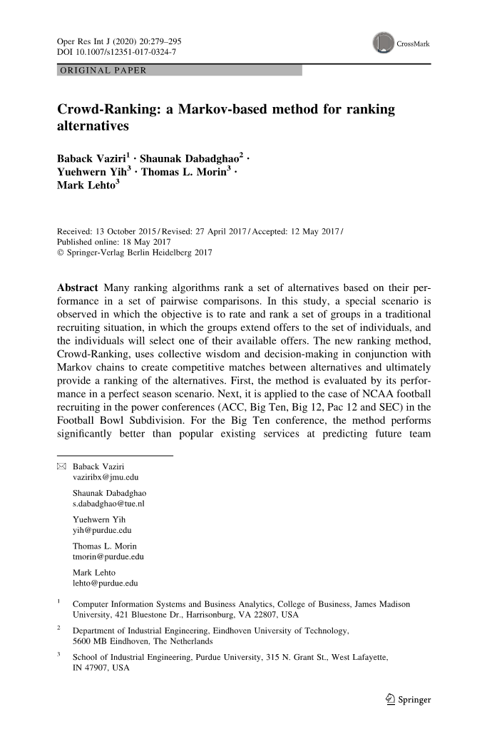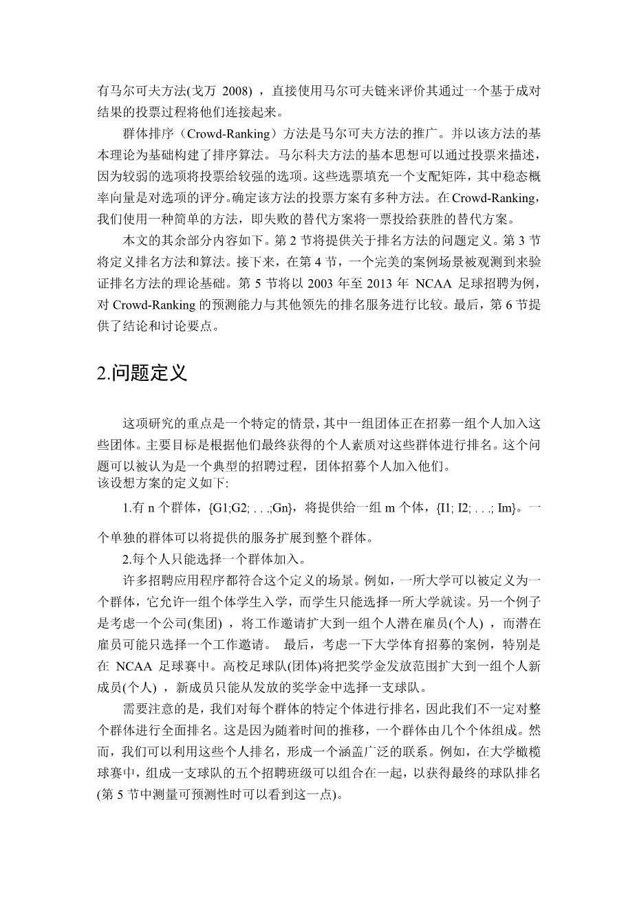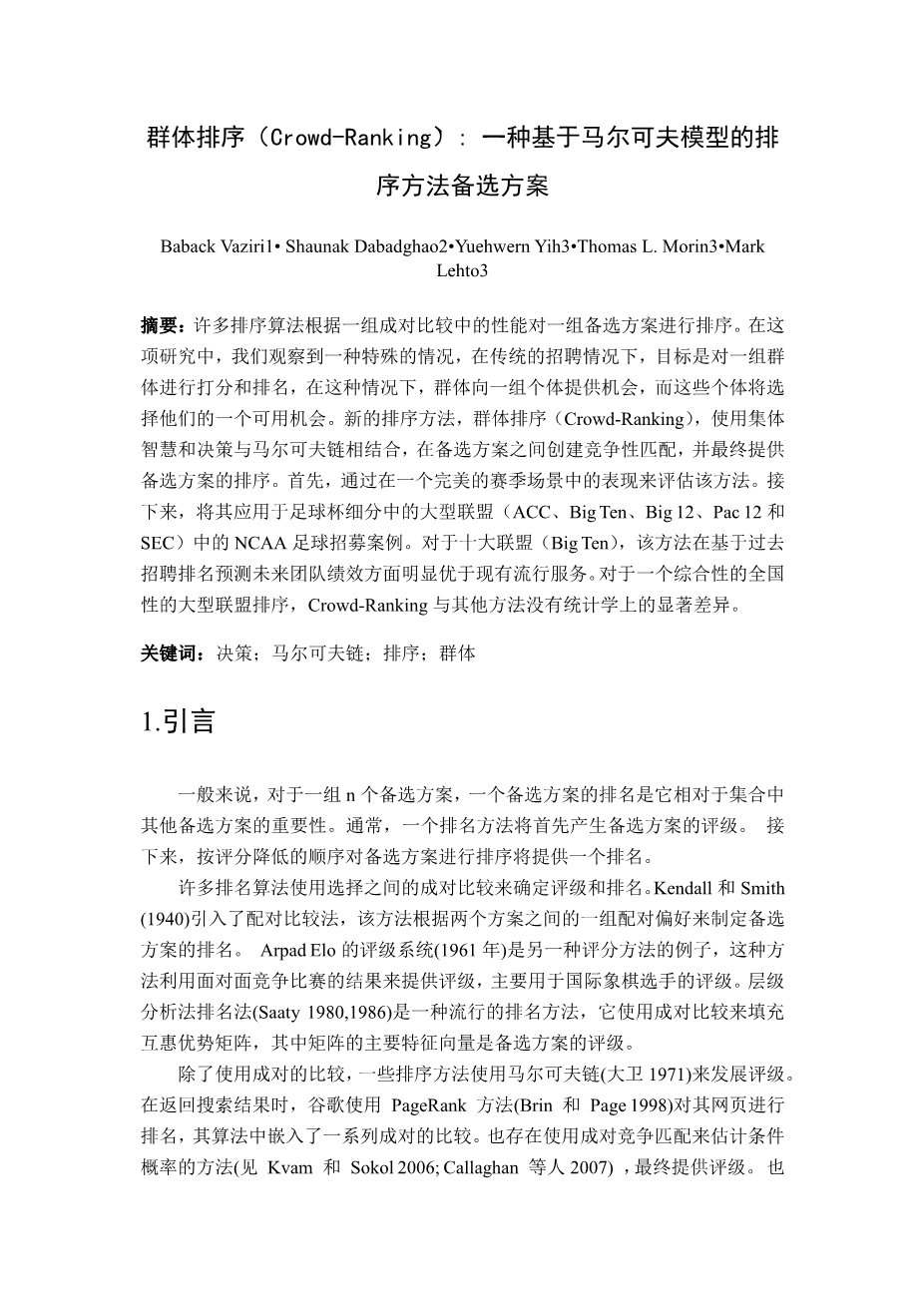 群体排序(Crowd-Ranking) :一种基于马尔可夫模型的排 序方法备选方案外文翻译资料