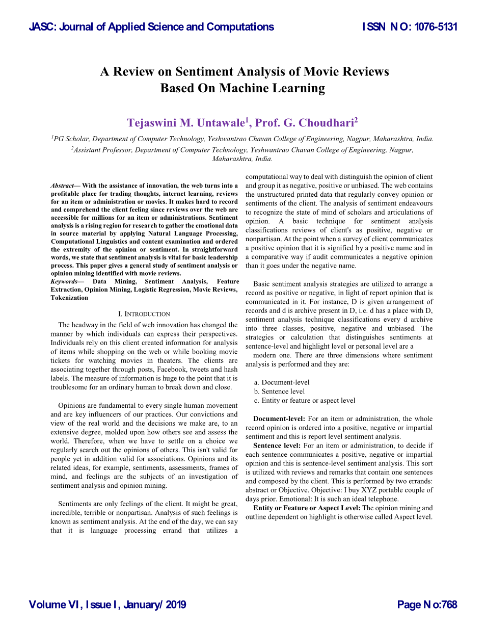 Shravan Vishwanathan等人提出了评论破坏的番茄是从其中一个数据库中积累的。在那指出每个概述,标记化完成,通道令牌长度。在那之后执行词干和之后那种情绪不需要的驱逐令牌分析。