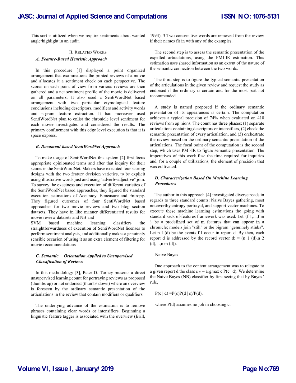 在这个程序中显示了一个有组织的点安排考试电影的印刷评论并为每个角度分配一个情绪检查。然后,各种评论的每个观点的得分聚集并传送电影的情感概况在所有参数上。它还使用了基于SentiWordNet的具有两个特定词源特征的安排结论,包括描述符、修饰词、活动词和n-gram特征提取。它还使用了SentiWordNet计划争取纪事级别的情绪每部电影都经过调查并考虑了结果。该种边缘级别执行的主要限制它的空间传递。