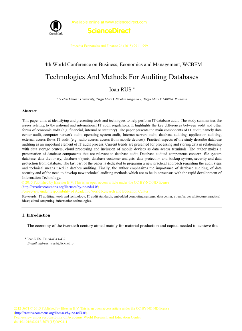 本文旨在识别和展示帮助执行IT数据库审计的工具和技术。该研究总结了与国家和国际信息技术审计条例有关的问题。它强调了审计与其他方面的主要区别经济审计的形式(例如财务,内部或法定)。本文介绍了IT审计的主要组成部分,即数据中心审计,计算机网络审计,操作系统审计,Internet服务器审计,数据库审计,应用程序审计,外部访问流程IT审计(例如,无线电访问,来自移动设备的访问)。该研究的实际方面描述了数据库审计是IT审计过程的重要组成部分。提供了当前趋势,用于处理和存储关系中的数据具有数据存储中心,云处理和包含移动设备作为数据访问终端。作者做了一个介绍与数据库审计相关的数据库组件。数据库审计组件涉及:文件系统数据库,数据字典,数据库对象,数据库客户分析,数据保护和备份系统,安全性和数据保护数据库。本文的最后部分致力于为审计步骤准备一种新的实用方法和数据库审计中使用的技术手段。最后,作者强调了数据库审计对数据的重要性安全性以及开发新的技术审计方法的必要性,这些方法将与中国的快速发展达成共识信息技术。本文通过详细说明数据库审计相关方面,强调了此类审计的理论和实践方面。 我们发现,非计算机专家的用户在解释和使用IT审计报告时存在问题。