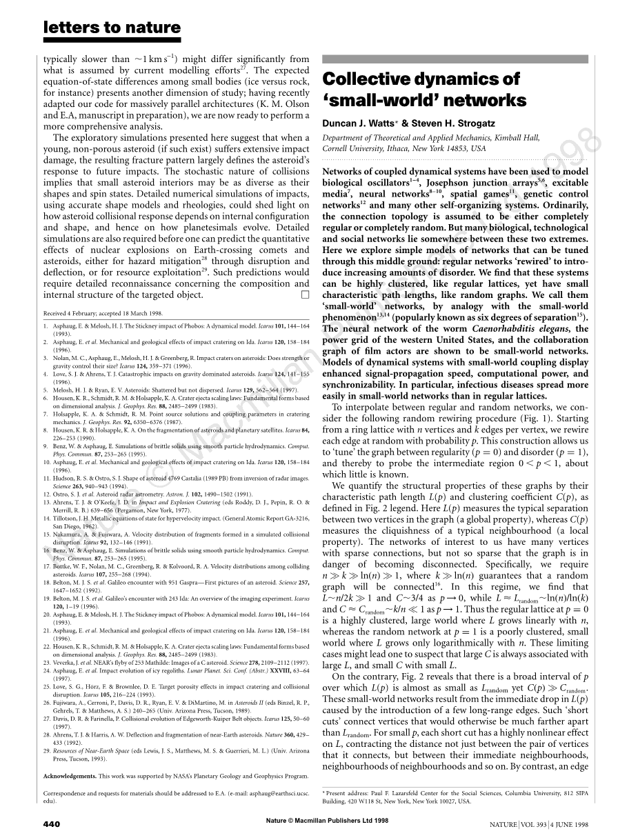表 1 说明三个图都是小世界网络。这些例子不是精心挑选的;之所以选它们是因为它们内在的价值以及可以得到它们的完全连线图。这样,小世界现象就不仅仅是社会网络13,14的奇异特性,也不是理想模型的赝像——它或许对自然界许多大型稀疏网络是一种普遍现象。