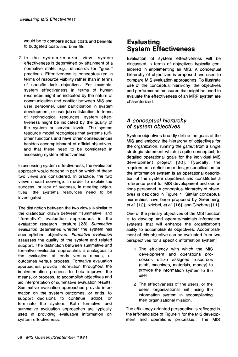 这第一篇文章旨在概述评估MIS有效性的方法。系统的有效性是首次被讨论,根据系统目标的概念层次来讨论系统有效性同样也是第一次。概念层次结构用于讨论评估系统有效性的问题和建议。同时,它也被应用于评估成熟的MIS和比较MIS的评估方法。