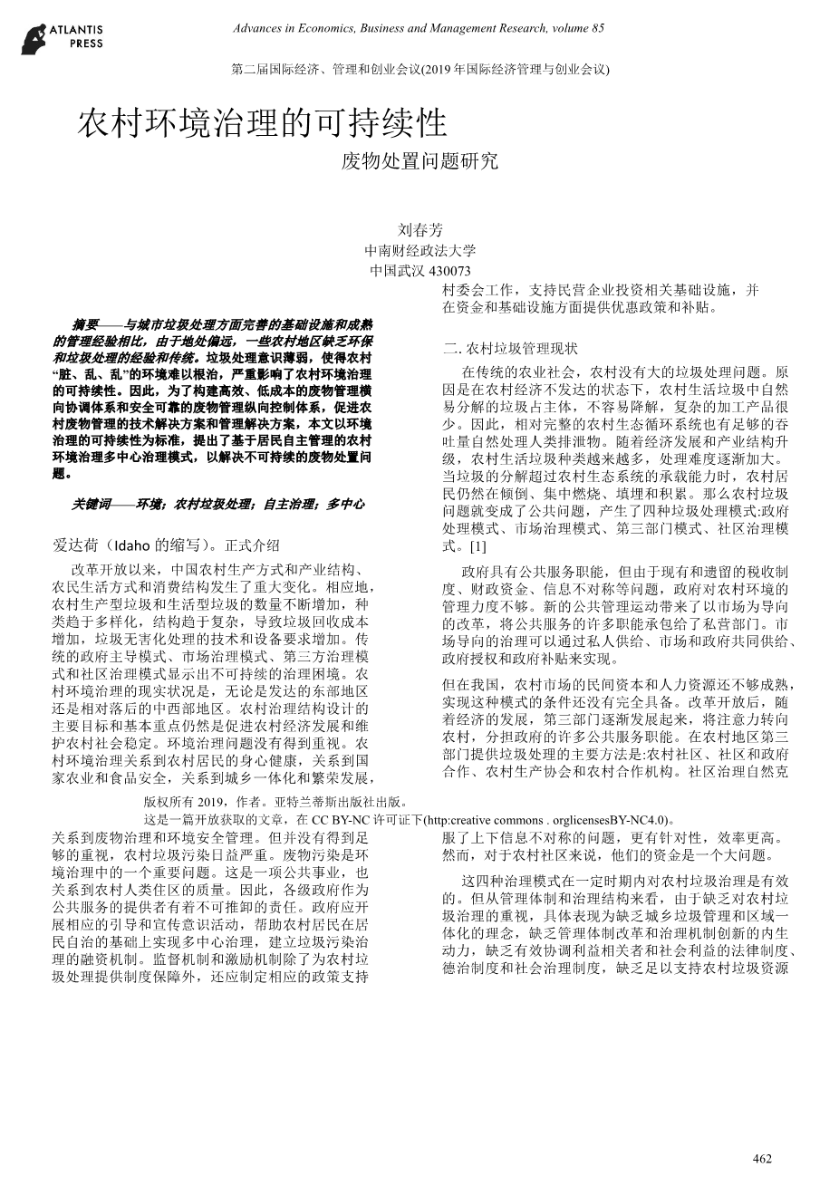 农村环境治理的可持续性废物处置问题研究外文翻译资料 2022-08-02 15:25:24 英语原文共 4 页,剩余内容已隐藏,支付完成后下载完整资料 英语译文共 3 页,剩余内容已隐藏,支付完成后下载完整资料 资料编号:[267115],资料为PDF文档或Word文档,PDF文档可免费转换为Word 原文和译文剩余内容已隐藏,您需要先支付 30元 才能查看原文和译文全部内容!立即支付 发小红书推广免费获取该资料资格。点击链接进入获取推广文案即可: Ai一键组稿 | 降AI率 | 降重复率 | 论文一键排版 PREVIOUS NEXT 您可能感兴趣的文章 论拆迁补偿政策变迁及其对城市化进程影响外文翻译资料 城市化进程中农村集体社区的变迁–以昆山为例外文翻译资料 捷克环境非政府组织:欧盟多层次治理中的行动者或代理人?[1]外文翻译资料 公共和非营利组织的战略规划过程外文翻译资料 新加坡成功的电子政务外文翻译资料 “广场舞事件”所折射出的社会问题探析外文翻译资料 开放政府和它们的文化转变外文翻译资料 国际海洋环境治理:审查外文翻译资料 关于低碳社会的政策及其做法外文翻译资料 电子政务在三个拉丁美洲国家的应用:阿根廷、巴西和墨西哥外文翻译资料