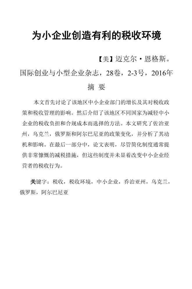 为小企业创造有利的税收环境外文翻译资料