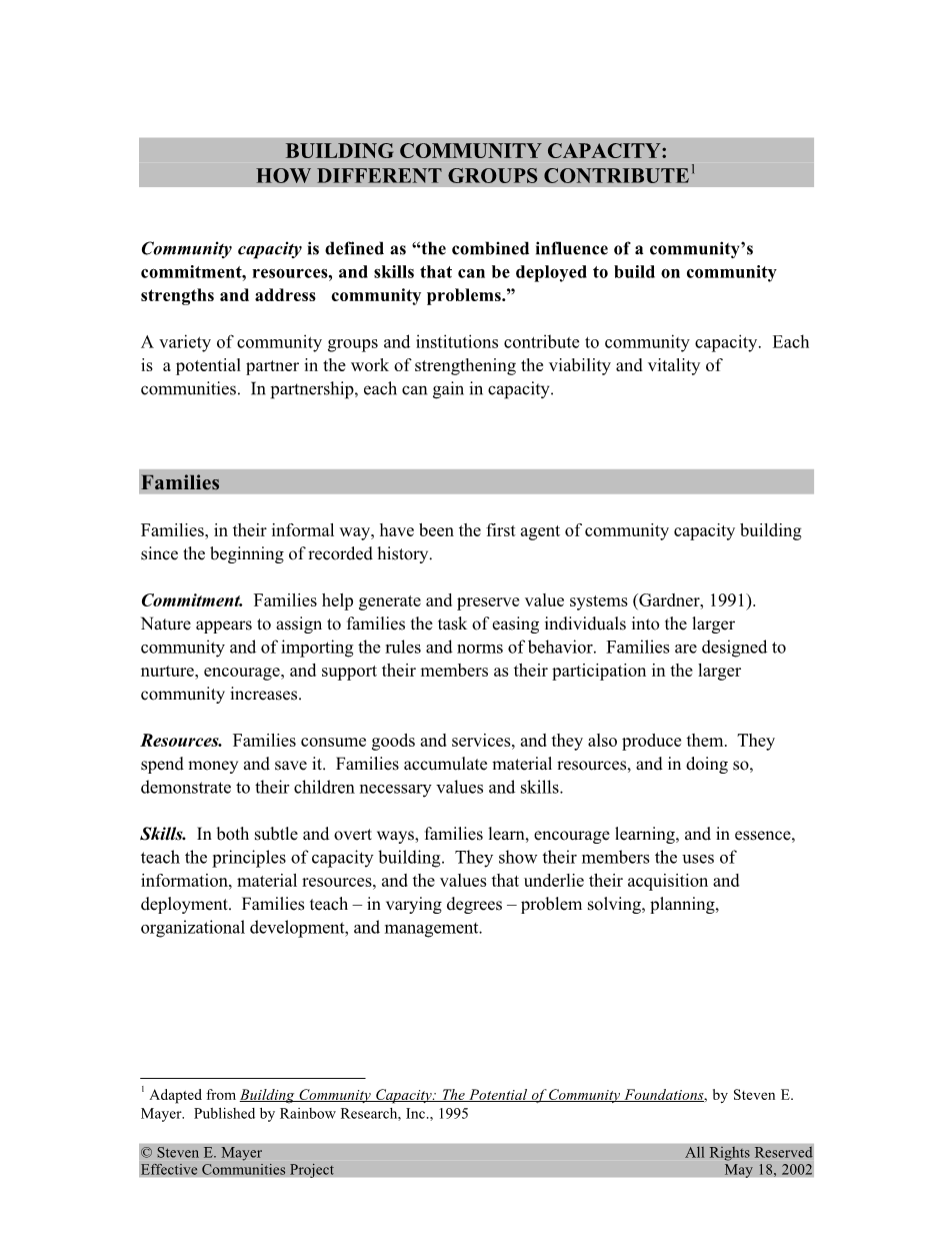 自有记录的历史开始,家庭就以非正式的方式成为社区能力建设的第一代理人。