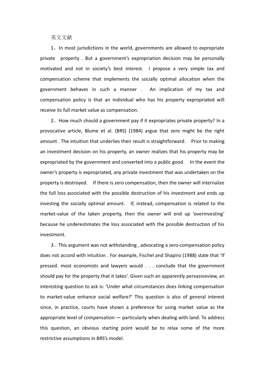 论拆迁补偿政策变迁及其对城市化进程影响外文翻译资料 2023-02-02 09:19:26 英语原文共 6 页,剩余内容已隐藏,支付完成后下载完整资料 英语译文共 4 页,剩余内容已隐藏,支付完成后下载完整资料 资料编号:[260843],资料为PDF文档或Word文档,PDF文档可免费转换为Word 原文和译文剩余内容已隐藏,您需要先支付 30元 才能查看原文和译文全部内容!立即支付 发小红书推广免费获取该资料资格。点击链接进入获取推广文案即可: Ai一键组稿 | 降AI率 | 降重复率 | 论文一键排版 PREVIOUS NEXT 您可能感兴趣的文章 论拆迁补偿政策变迁及其对城市化进程影响外文翻译资料 城市化进程中农村集体社区的变迁–以昆山为例外文翻译资料 捷克环境非政府组织:欧盟多层次治理中的行动者或代理人?[1]外文翻译资料 公共和非营利组织的战略规划过程外文翻译资料 新加坡成功的电子政务外文翻译资料 “广场舞事件”所折射出的社会问题探析外文翻译资料 开放政府和它们的文化转变外文翻译资料 国际海洋环境治理:审查外文翻译资料 关于低碳社会的政策及其做法外文翻译资料 电子政务在三个拉丁美洲国家的应用:阿根廷、巴西和墨西哥外文翻译资料