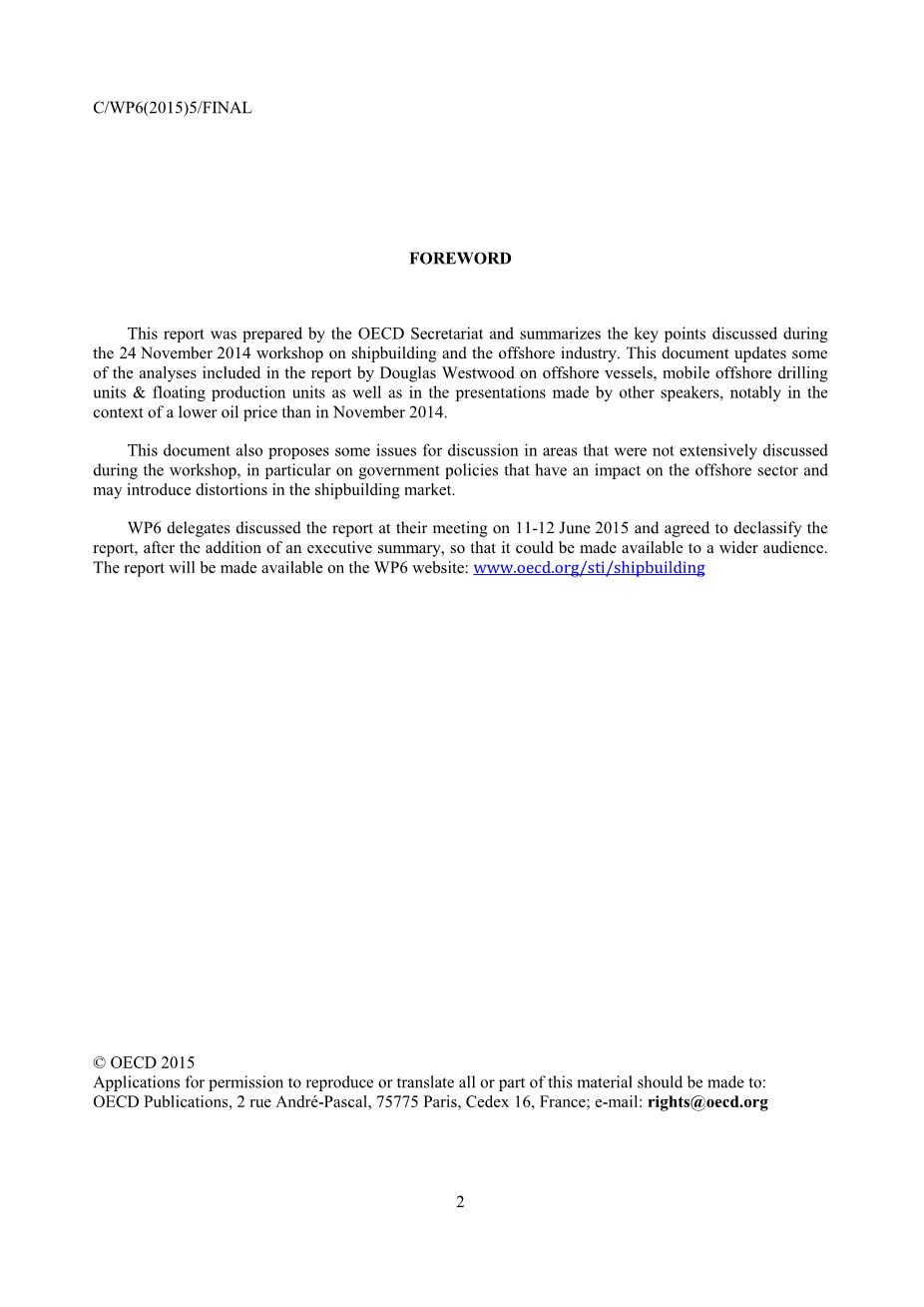 WP6代表在2015年6月11日至12日的会议上讨论了该报告,并同意在增加行政摘要后公布该报告,以便能够向更广泛的受众提供。该报告将在WP6网站上公布: www.oecd.org/sti/shipbuilding