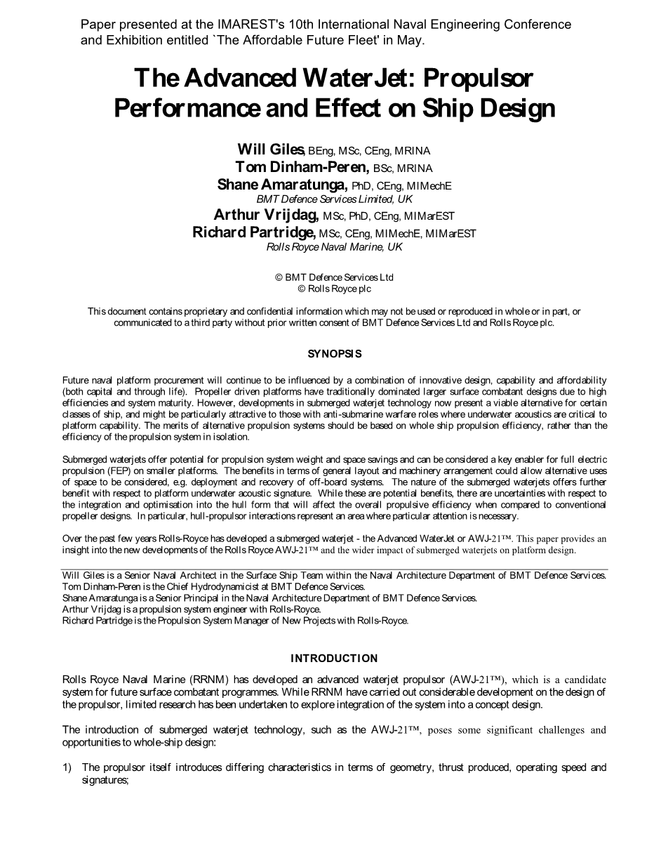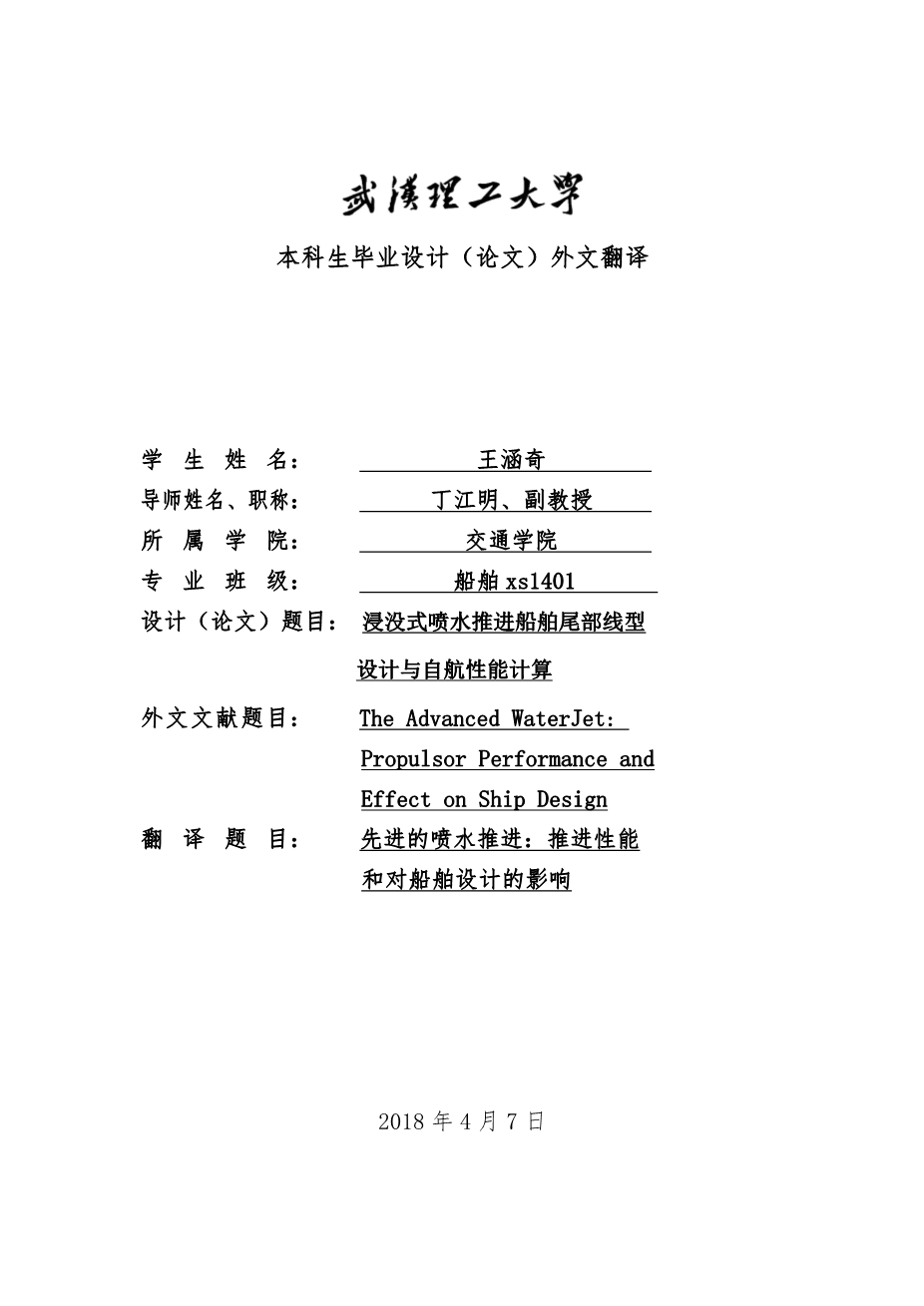 浸没式喷水推进船舶尾部线型设计与自航性能计算外文翻译资料