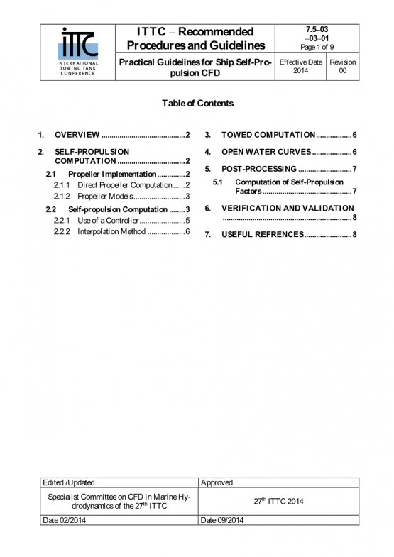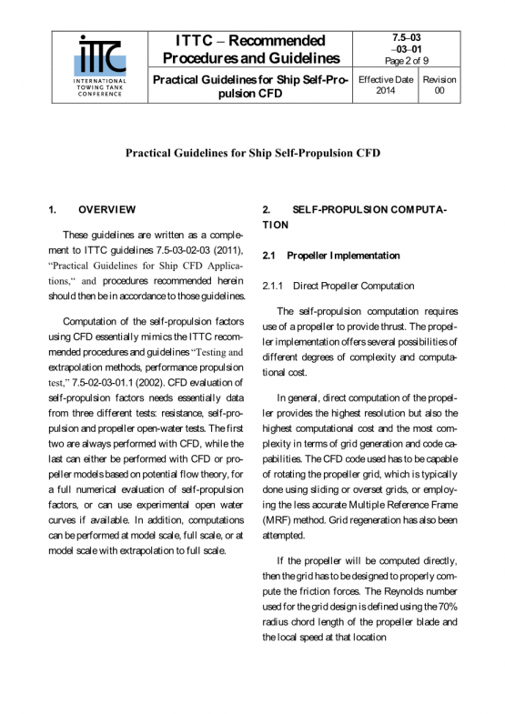 These guidelines are written as a complement to ITTC guidelines 7.5-03-02-03 (2011), “Practical Guidelines for Ship CFD Applications,“ and procedures recommended herein should then be in accordance to those guidelines.