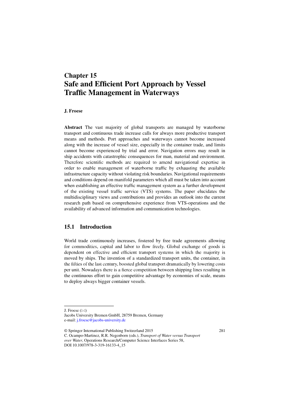 水运管理中感情搞笑的进港方法外文翻译资料 2022-07-31 20:09:50 英语原文共 16 页,剩余内容已隐藏,支付完成后下载完整资料 英语译文共 12 页,剩余内容已隐藏,支付完成后下载完整资料 资料编号:[241504],资料为PDF文档或Word文档,PDF文档可免费转换为Word 原文和译文剩余内容已隐藏,您需要先支付 30元 才能查看原文和译文全部内容!立即支付 发小红书推广免费获取该资料资格。点击链接进入获取推广文案即可: Ai一键组稿 | 降AI率 | 降重复率 | 论文一键排版 PREVIOUS NEXT 您可能感兴趣的文章 进水流道与船体的整体优化以及当前现状 为改进运行效率提出的一种先进的喷水推进器进水流道设计以及 与船体整合后的最优化方案外文翻译资料 对于超级游艇的先进的推进装置(系列)外文翻译资料 防止意外船舶碰撞的海洋结构物设计外文翻译资料 焊接接头处结构应力的定义和疲劳分析的数值方法外文翻译资料 一类双曲型守恒律的激波捕捉格式外文翻译资料 拍动翼力学特性分析外文翻译资料 对海上三体船操作和维护的特征参数和阻力图谱的研究外文翻译资料 “005”自升式钻井平台方案设计外文翻译资料 由单色和不规则波组成的升降平台的土壤 结构相互作用分析外文翻译资料 适应深水作业加长自升式桩腿长度的研究外文翻译资料