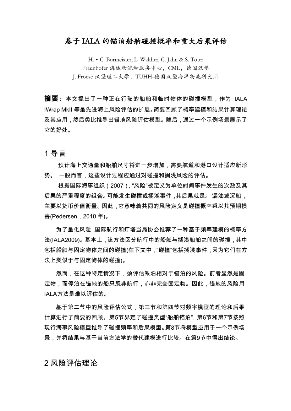 基于IALA的锚泊船碰撞概率和重大后果评估外文翻译资料