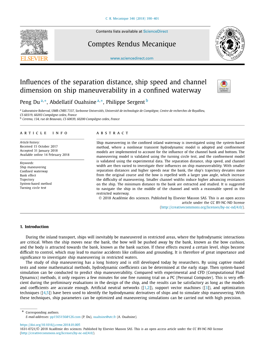 在本文中,使用基于系统的方法研究船舶在指定水道的操纵性。在非线性操纵中,将航道河岸和底质的影响作为外力实现。改变分隔距离、船速和航道尺度可以研究限制对船舶的航迹和偏航角的影响。根据这些因素确定船舶和河岸的最小距离,以定量表征受限水路的船舶航行。