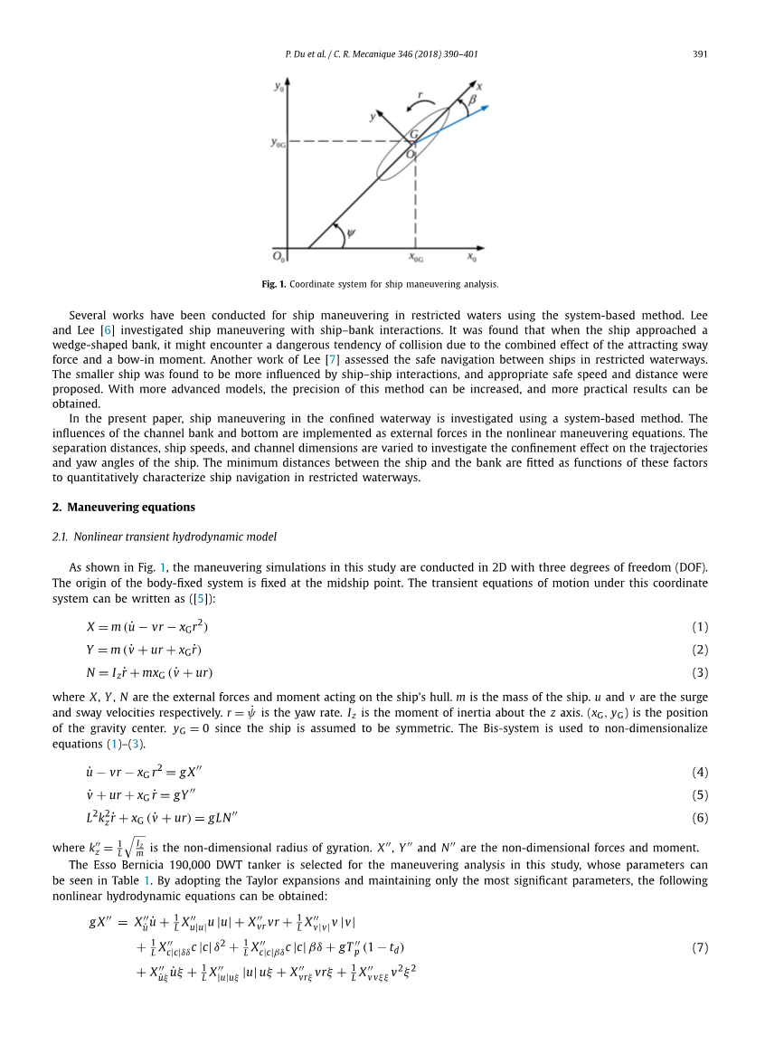 船舶操纵性的研究历史悠久,至今研究人员仍然在继续研究。通过使用限制模型和一些数学方法,可以早期确定水动力系数。然后基于系统的模型的仿真以预测船舶操纵性能。与实验方法和CFD(计算机流体力学)方法相比较,在PC(个人电脑)上进行一次免费运行实验只需几分钟。这在船舶设计的初步评估过程十分有效,只要模型和系数足够的精确,结果就会很满意。人工神经网络([1,2])、支持向量机器[3]和优化技术([4,5])已经被用于识别船舶水动力导数和模拟船舶操纵。通过使用这些技术,船舶参数可以被优化并且进行高精度的模拟操纵。