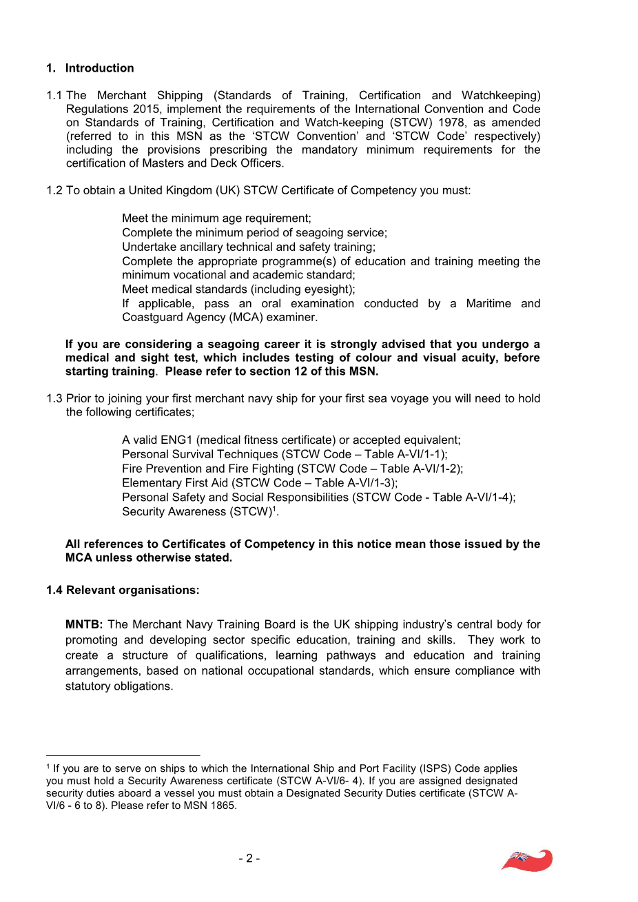 1.2要获得英国(英国)STCW合格证书,您必须:满足最低年龄要求;·