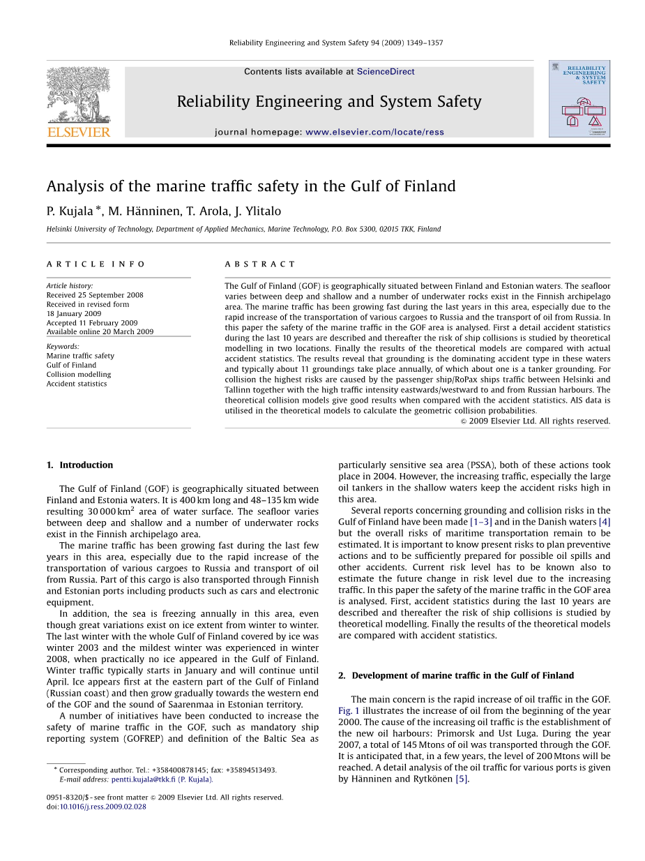 芬兰湾海上交通安全分析外文翻译资料