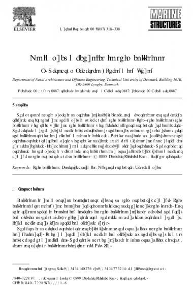 摘 要:本文的目的是提出船舶碰撞过程中释放的能量和撞击力的分析式、闭式表达式。介绍了船舶碰撞、船舶与刚性墙体碰撞和船舶与柔性海上结构碰撞。推导出的数学模型包括接触点处的摩擦,因此包括碰撞导致滑动运动的情况。应用该方法得到的结果与时间模拟得到的结果进行了比较,取得了良好的一致性。此外,还提供了一些示例。本文所提出的计算方法非常适用于船舶结构碰撞损伤概率计算模型。copy;1999埃尔塞维尔科技有限公司保留所有权利。
