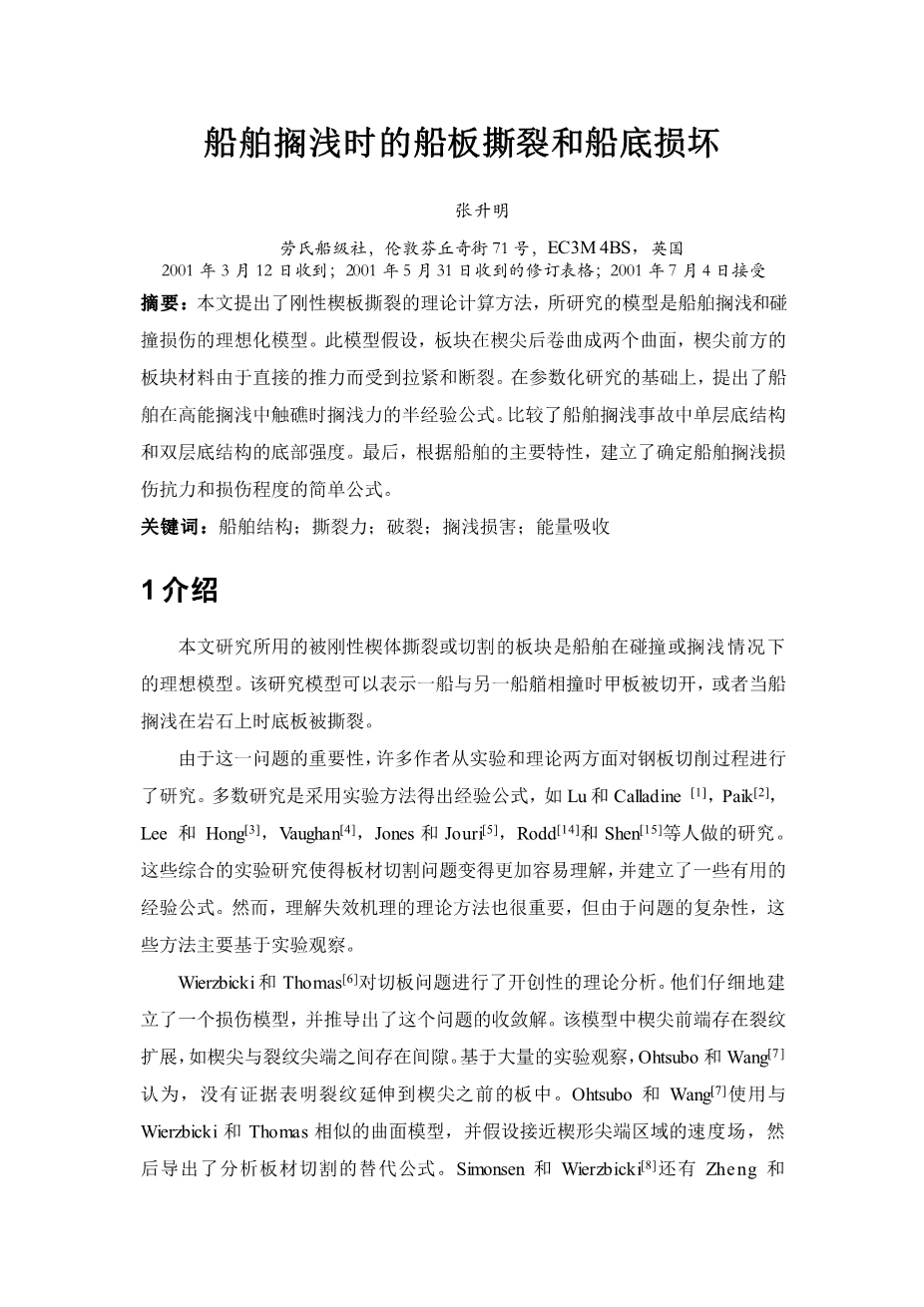 船舶搁浅时的船板撕裂和船底损坏外文翻译资料 2022-08-10 15:29:19 英语原文共 17 页,剩余内容已隐藏,支付完成后下载完整资料 英语译文共 16 页,剩余内容已隐藏,支付完成后下载完整资料 资料编号:[238524],资料为PDF文档或Word文档,PDF文档可免费转换为Word 原文和译文剩余内容已隐藏,您需要先支付 30元 才能查看原文和译文全部内容!立即支付 发小红书推广免费获取该资料资格。点击链接进入获取推广文案即可: Ai一键组稿 | 降AI率 | 降重复率 | 论文一键排版 PREVIOUS NEXT 您可能感兴趣的文章 进水流道与船体的整体优化以及当前现状 为改进运行效率提出的一种先进的喷水推进器进水流道设计以及 与船体整合后的最优化方案外文翻译资料 对于超级游艇的先进的推进装置(系列)外文翻译资料 防止意外船舶碰撞的海洋结构物设计外文翻译资料 焊接接头处结构应力的定义和疲劳分析的数值方法外文翻译资料 一类双曲型守恒律的激波捕捉格式外文翻译资料 拍动翼力学特性分析外文翻译资料 对海上三体船操作和维护的特征参数和阻力图谱的研究外文翻译资料 “005”自升式钻井平台方案设计外文翻译资料 由单色和不规则波组成的升降平台的土壤 结构相互作用分析外文翻译资料 适应深水作业加长自升式桩腿长度的研究外文翻译资料