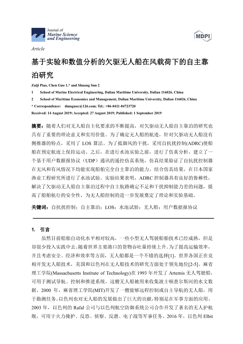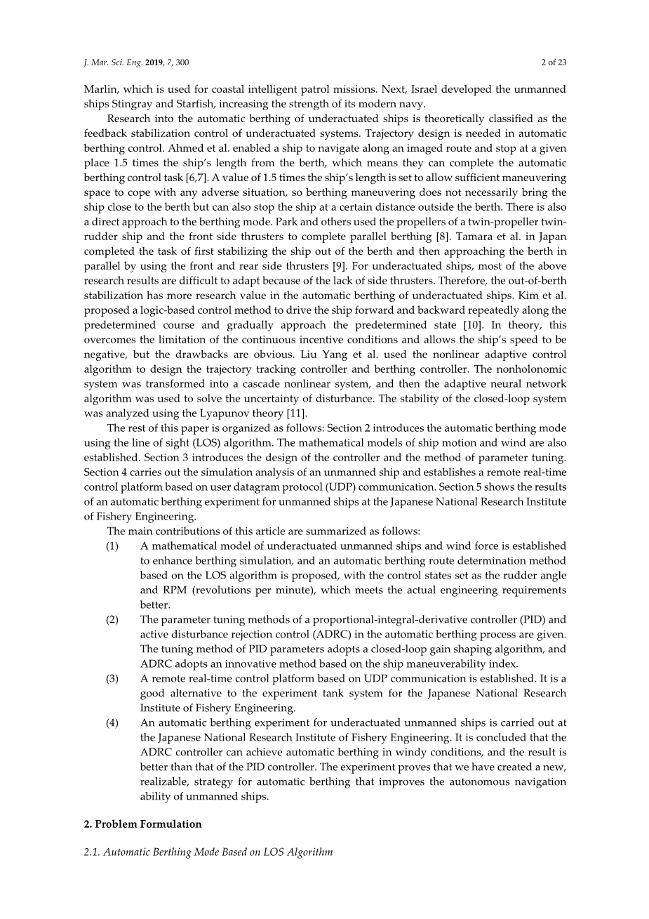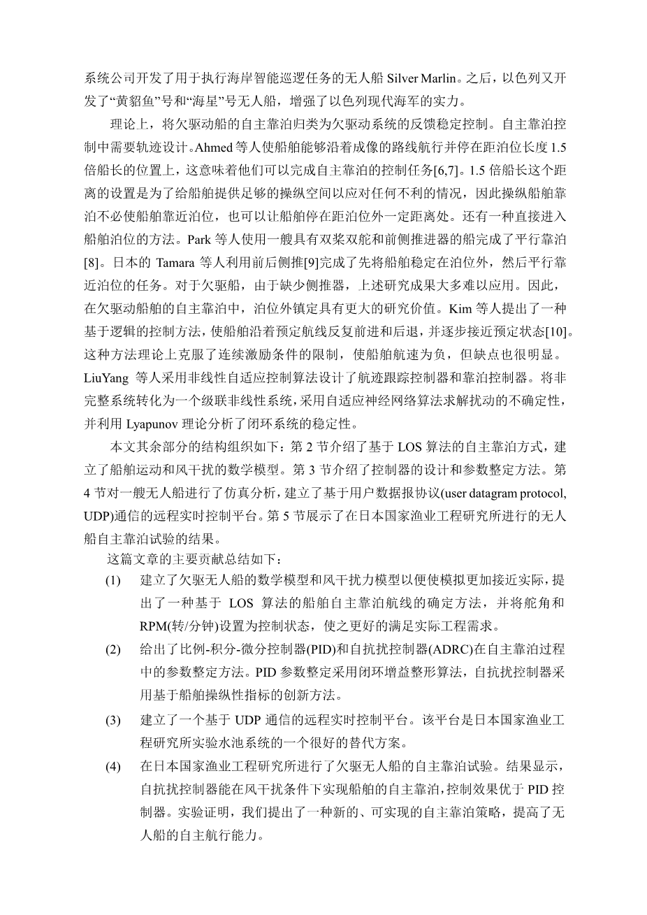 基于实验和数值分析的欠驱无人船在风载荷下的自主靠泊研究外文翻译资料 2022-08-12 15:37:46 英语原文共 13 页,剩余内容已隐藏,支付完成后下载完整资料 英语译文共 12 页,剩余内容已隐藏,支付完成后下载完整资料 资料编号:[236832],资料为PDF文档或Word文档,PDF文档可免费转换为Word 原文和译文剩余内容已隐藏,您需要先支付 30元 才能查看原文和译文全部内容!立即支付 发小红书推广免费获取该资料资格。点击链接进入获取推广文案即可: Ai一键组稿 | 降AI率 | 降重复率 | 论文一键排版 PREVIOUS NEXT 您可能感兴趣的文章 进水流道与船体的整体优化以及当前现状 为改进运行效率提出的一种先进的喷水推进器进水流道设计以及 与船体整合后的最优化方案外文翻译资料 对于超级游艇的先进的推进装置(系列)外文翻译资料 防止意外船舶碰撞的海洋结构物设计外文翻译资料 焊接接头处结构应力的定义和疲劳分析的数值方法外文翻译资料 一类双曲型守恒律的激波捕捉格式外文翻译资料 拍动翼力学特性分析外文翻译资料 对海上三体船操作和维护的特征参数和阻力图谱的研究外文翻译资料 “005”自升式钻井平台方案设计外文翻译资料 由单色和不规则波组成的升降平台的土壤 结构相互作用分析外文翻译资料 适应深水作业加长自升式桩腿长度的研究外文翻译资料