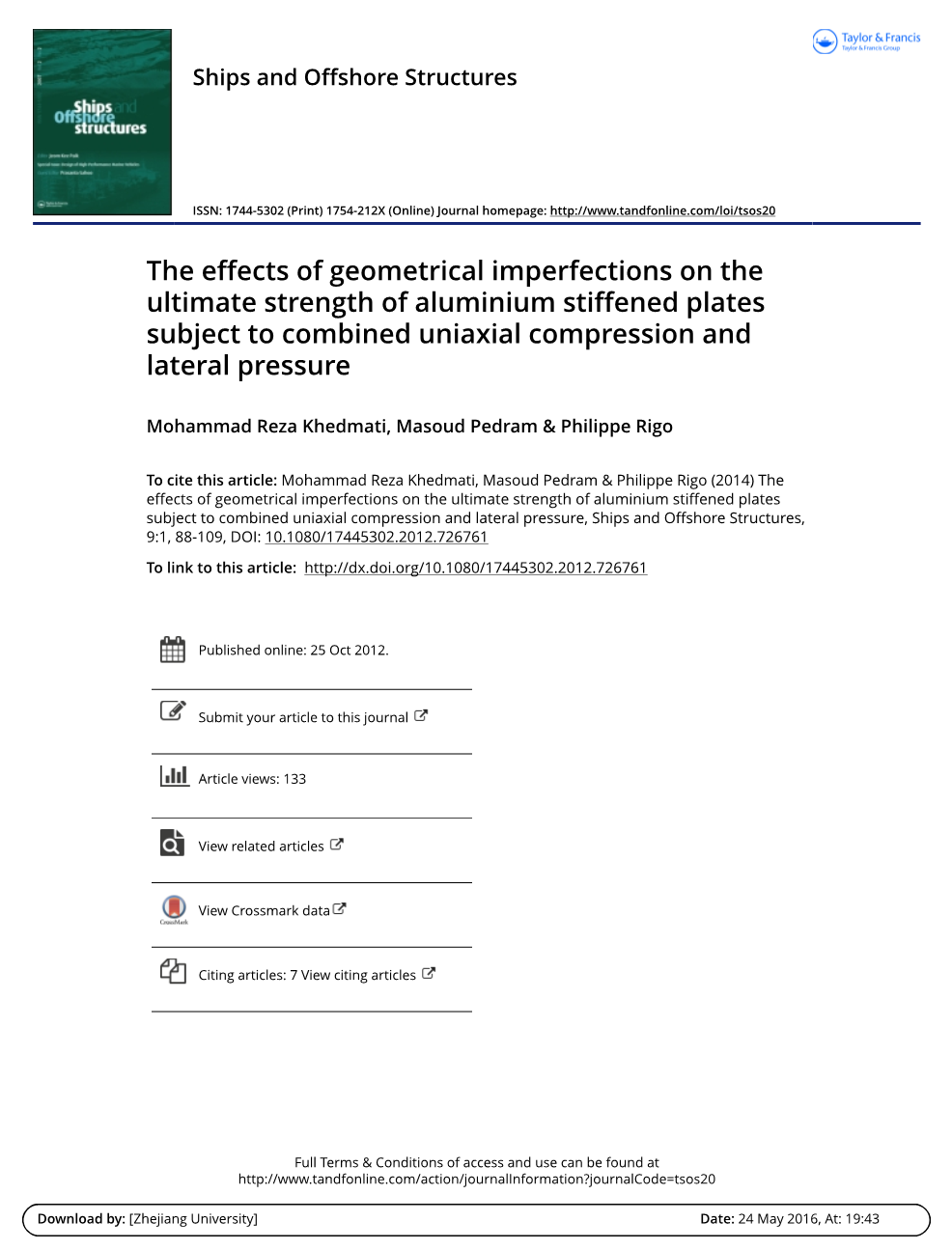 几何缺陷对单轴压缩和侧向压力共同作用下铝加筋板极限强度的影响外文翻译资料
