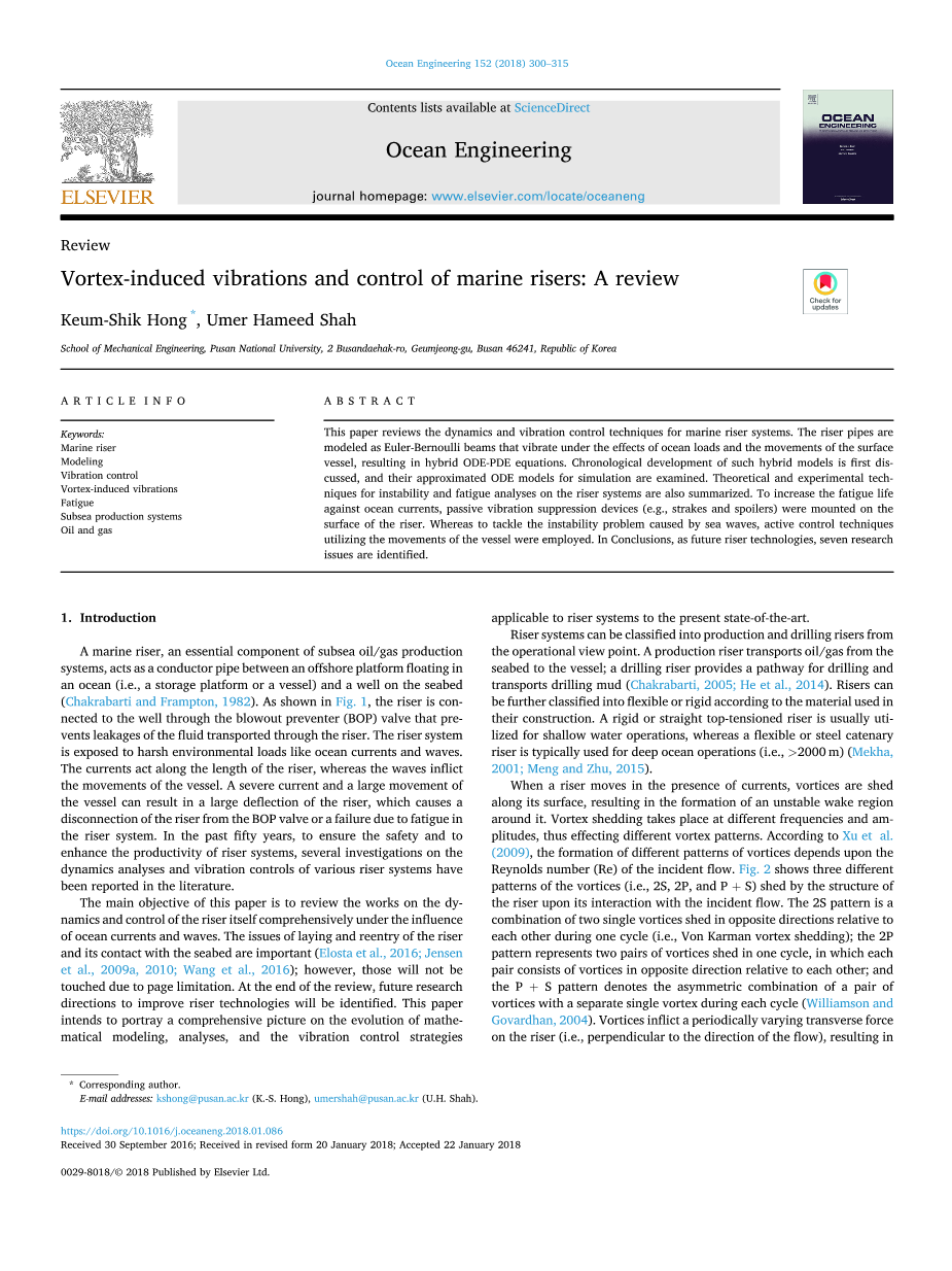 本文讨论了在恶劣环境条件下隔水管系统复杂响应的实验和理论研究(见第3节)。大多数实验研究已经评估了隔水管模型的响应,尽管只是在简化(如均匀流)荷载条件下。此外,模拟高紊流的实验装置的实用性也受到限制。尽管如此,一些研究报告还是对立管系统的反应提出了非常有价值的见解(见第3.2小节)。理论分析通过交替求解相关运动方程来预测隔水管的时间响应,可以得到更丰富的数据。有几项研究提出了动力学、水动力和由此产生的流体-结构相互作用的数学公式(见第2节)。这个综述包括确定隔水管响应的确定性(即在时间和频率域)和非确定性(即随机)方法(见第3.1小节)。在讨论隔水管系统动力学之后,提出了基于被动和主动策略的振动控制方法(见第4节)。在第5节中确定了以下七个研究问题:i)考虑剪力的蒂莫申科梁模型,ii)考虑水动力变化的时变参数,iii)应对极端海洋条件的6自由度船模型,iv)实时参数估计的新数值方案,v)考虑实际水动力负荷的强化实验设施,vi)结合被动阻尼装置和主动控制的混合控制技术,以及vii)防止由于船只运动而在上升管端点发生故障的控制策略。