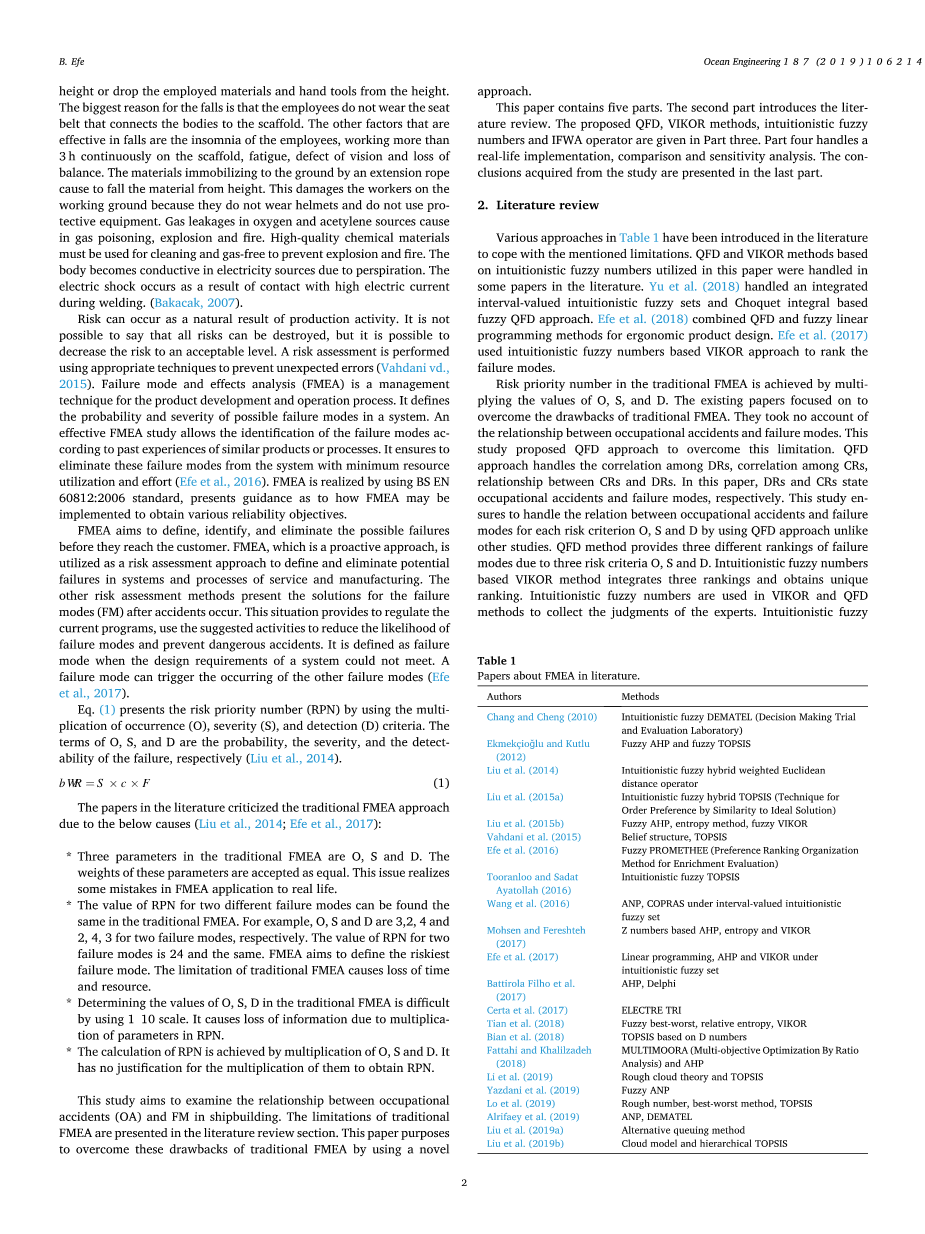 文献中已经介绍了表1中的各种方法来应对上述提及的限制。本文所采用的QFD方法和基于直觉模糊数的VIKOR方法在一些文献中得到了应用。Yu等人(2018)处理了一种集成的区间直觉模糊集和基于Choquet积分的模糊QFD方法。Efe等人(2018)将QFD和模糊线性规划方法结合起来进行人机工程学产品设计。Efe等(2017)采用基于直觉模糊数的VIKOR方法对失效模式进行排序。