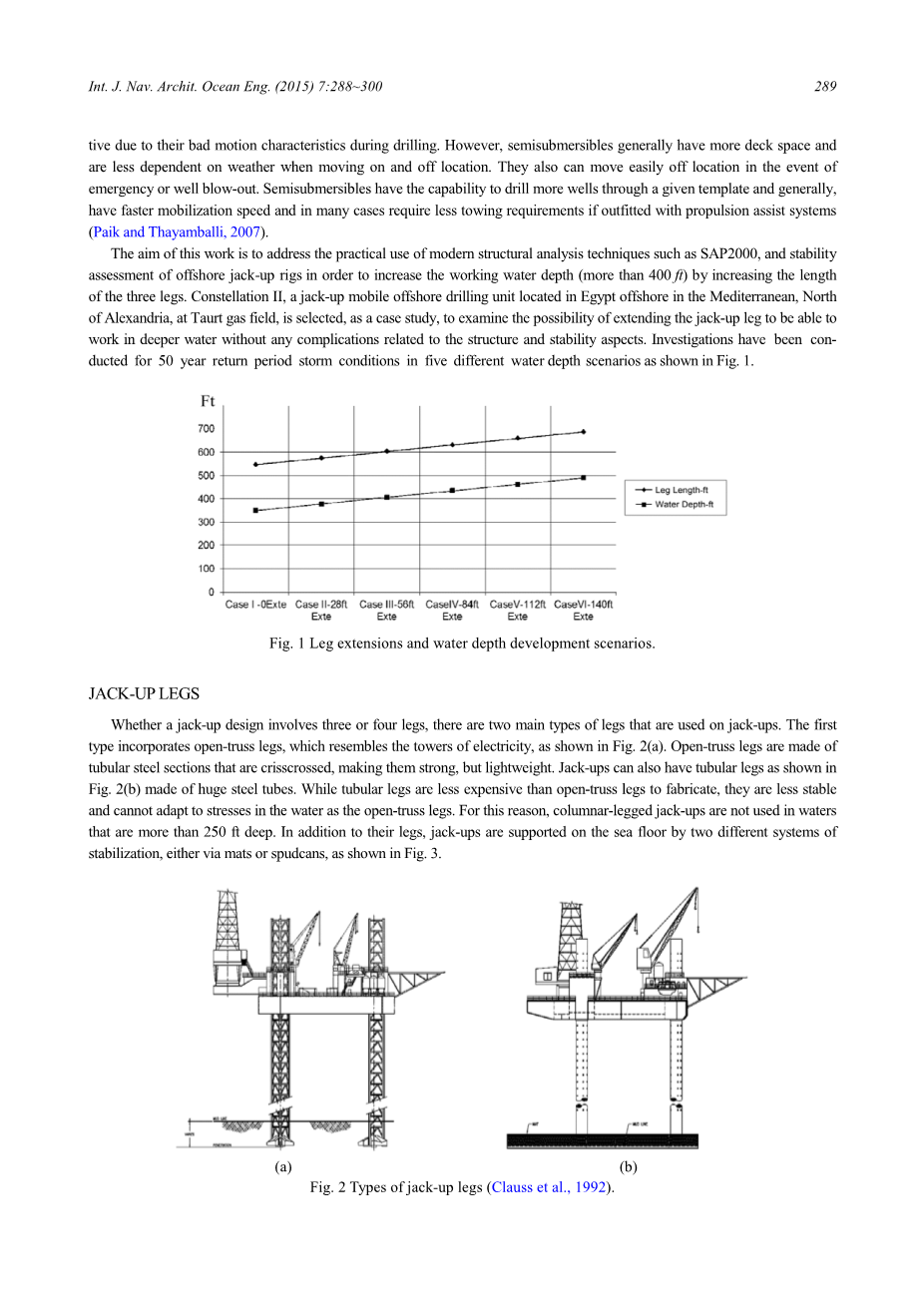 基本上,自升式钻井平台是在世界上任何区域,在给定了最大水深以及不同海况与海床条件的情况下,都能工作的一种可移动式平台。此外,自升式钻井平台经常在桩腿被升起后被运输到另一个近海位置,所以导致它在结构上有着完全不同的载荷 (Shabakhty,2004)。