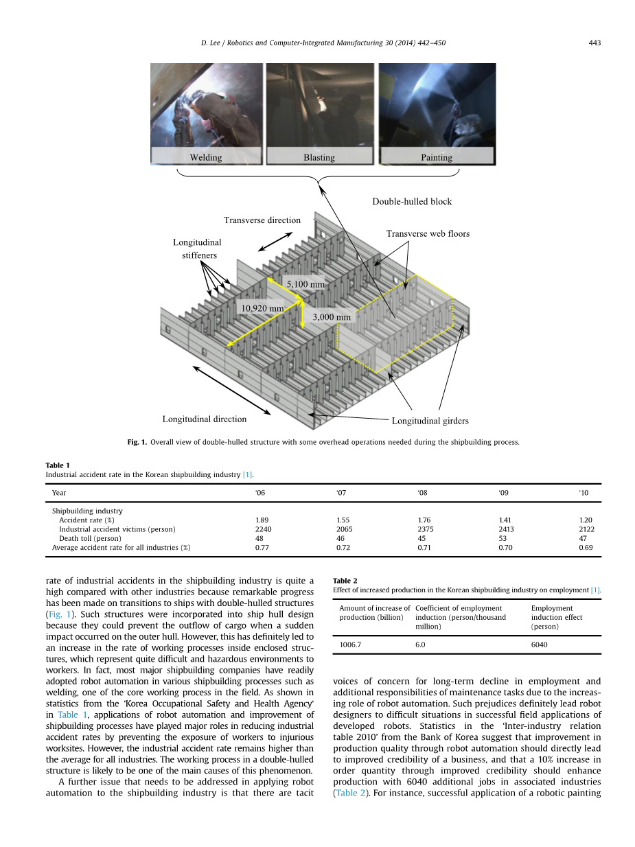 在过去的几十年里,机器人的研究对许多工业机器人产生了相当大的影响。这些在工业应用中的机器人研究的成功成果可以归因于劳动力成本的上升、技术工人的老龄化,许多行业都倾向于避免肮脏、危险和肮脏的工作。造船行业是本文主要关注的问题,因为它是需求众多技术工人的劳动者行业之一。由于工业本身的性质,缩短生产过程会直接导致工人从船东那里获得的额外的社会奖励的提高以及他们对企业的忠诚度的提高。因此,造船业公司自然会集中精力,通过对机器人自动化和造船工艺发展的大量投资,在质量保证要求的范围内提高生产效率。这部分我从工业事故预防和使用的角度探讨了机器人自动化技术在工业生产中的必要性工人的素质和生产条件。