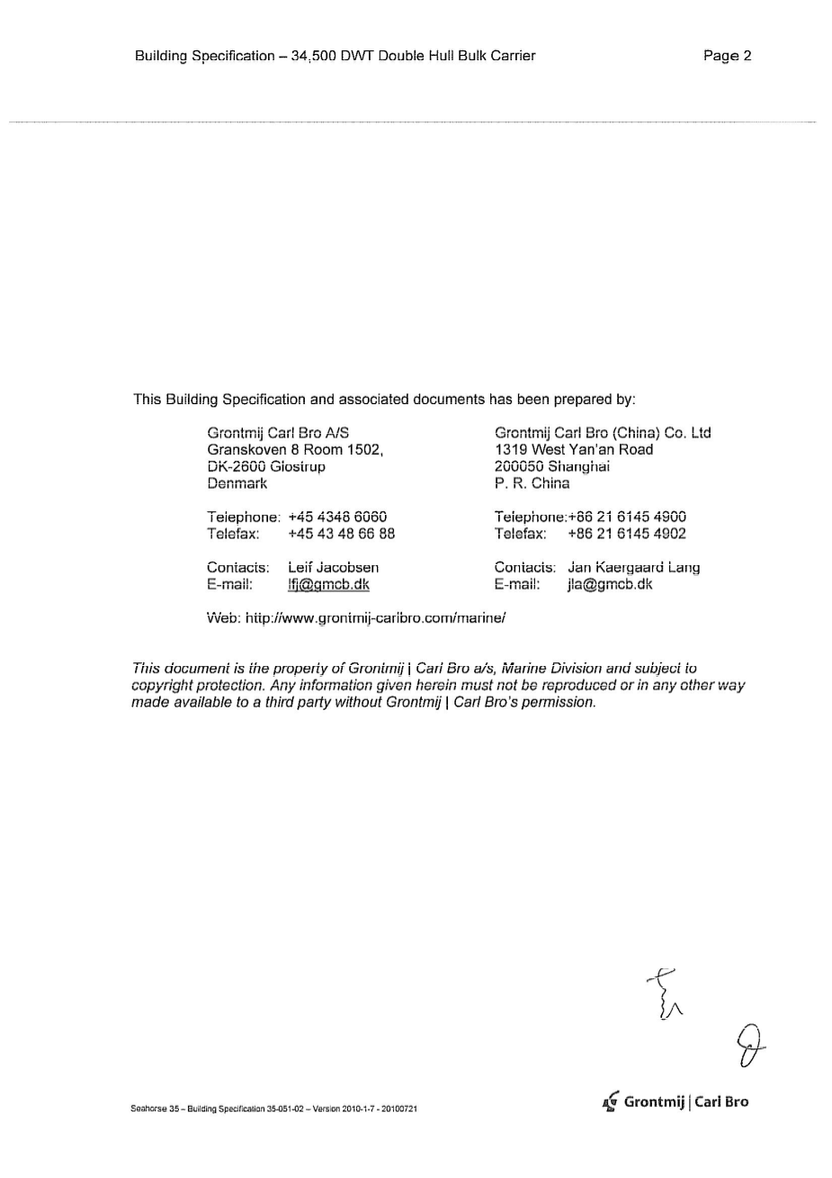 本规范连同总布置图和其他附图、平面图和示意图描述了船舶的特征和性能,并与附件2——图纸和文件清单一起构成船舶设计、建造、拆卸和交付的基础。关于规格书的详细细节,施工方所需的任何额外要求和改变,如额外的零件图或施工图等,对于船舶的建造都应满足船舶建造合同。本规范应当对船厂和船厂资金负责,并包括在合同价格中。