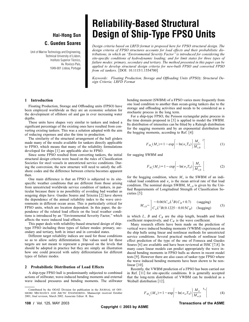 FPSO主船体结构设计及强度分析外文翻译资料 2022-01-22 23:22:44 英语原文共 7 页,剩余内容已隐藏,支付完成后下载完整资料 英语原文共 9 页,剩余内容已隐藏,支付完成后下载完整资料资料编号:[730] 原文和译文剩余内容已隐藏,您需要先支付 30元 才能查看原文和译文全部内容!立即支付 发小红书推广免费获取该资料资格。点击链接进入获取推广文案即可: Ai一键组稿 | 降AI率 | 降重复率 | 论文一键排版 PREVIOUS NEXT 您可能感兴趣的文章 进水流道与船体的整体优化以及当前现状 为改进运行效率提出的一种先进的喷水推进器进水流道设计以及 与船体整合后的最优化方案外文翻译资料 对于超级游艇的先进的推进装置(系列)外文翻译资料 防止意外船舶碰撞的海洋结构物设计外文翻译资料 焊接接头处结构应力的定义和疲劳分析的数值方法外文翻译资料 一类双曲型守恒律的激波捕捉格式外文翻译资料 拍动翼力学特性分析外文翻译资料 对海上三体船操作和维护的特征参数和阻力图谱的研究外文翻译资料 “005”自升式钻井平台方案设计外文翻译资料 由单色和不规则波组成的升降平台的土壤 结构相互作用分析外文翻译资料 适应深水作业加长自升式桩腿长度的研究外文翻译资料