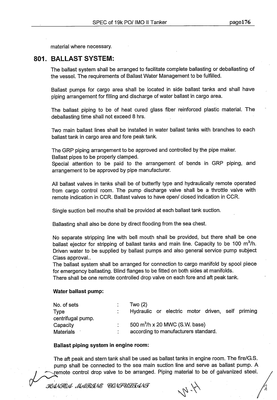 艏尖舱和艉尖舱应作为机舱压载水舱使用。通用泵应该连接到主要的海水吸嘴线上并作为压载水泵,安置一个远程控制的阀门。管路的材料应该用镀锌钢。