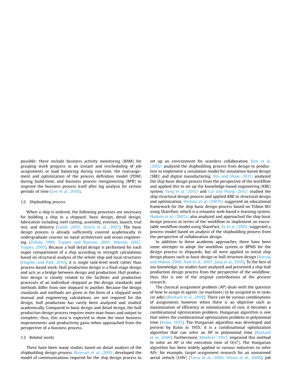 在 第2节,我们解释船体生产设计过程。 在第3节,我们描述了当前将船体生产设计的单元工作项块分配给设计工程师并解释标准块设计工时和设计工程师工时可用性的建议概念的方法。 在第4节,我们描述了将匈牙利算法应用于最佳分配的AP的过程。 在第5节,我们介绍BPM可执行模型的实现结果。 最后,在第6节,我们提出结论和计划的未来工作。