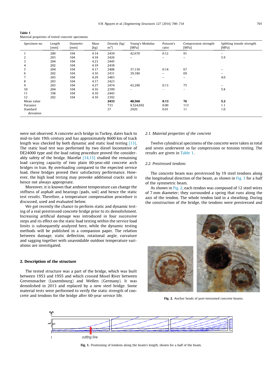 总共采集12个圆柱形混凝土标本,并对7个进行了压缩或拉伸试验。 结果在表中给出 表格1.
